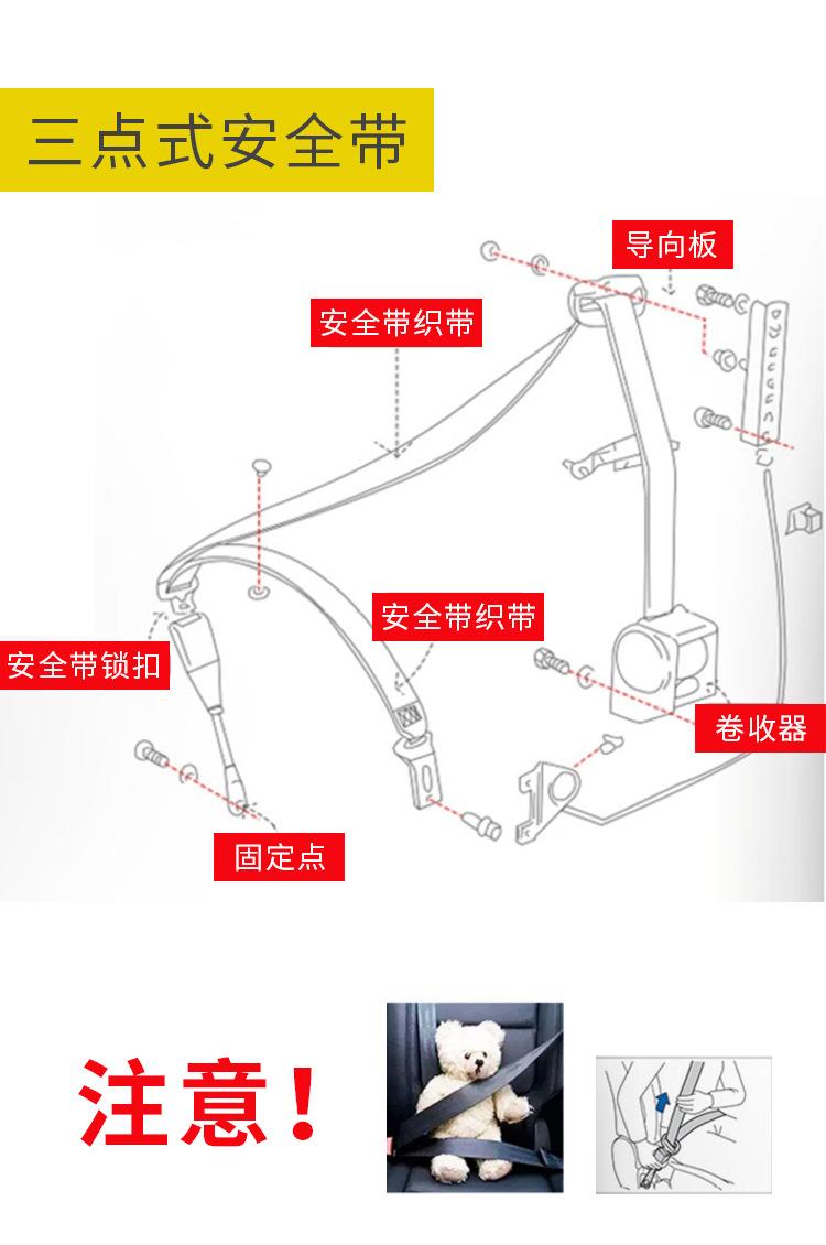 Three-point safety belt + iron bar buckle, Three-point safety belt + iron buckle, Three-point safety belt + br...