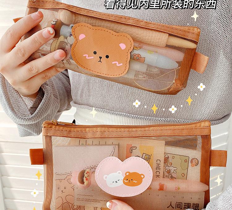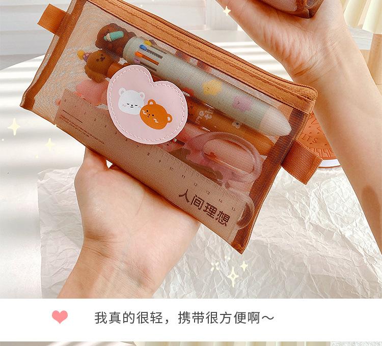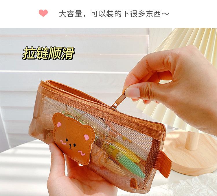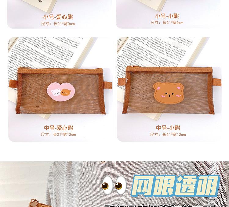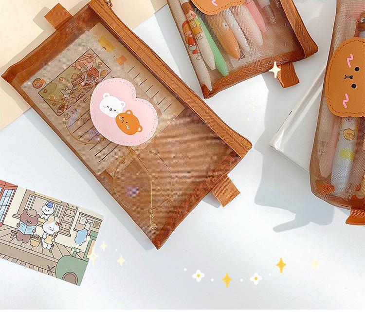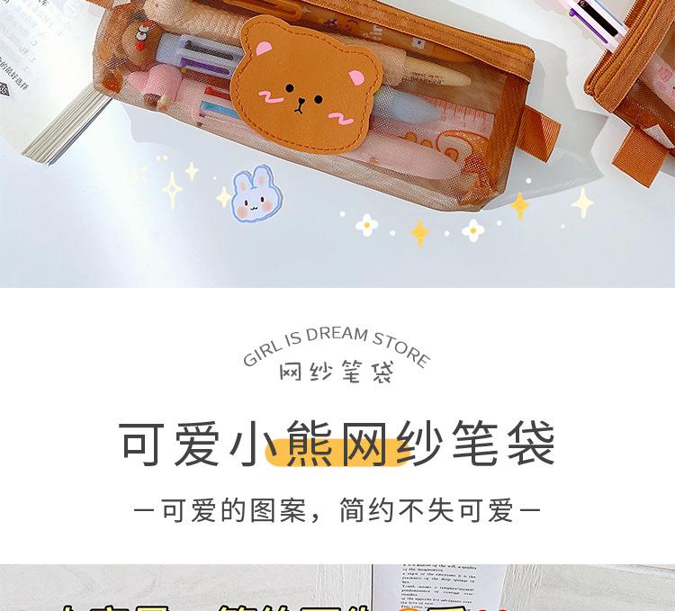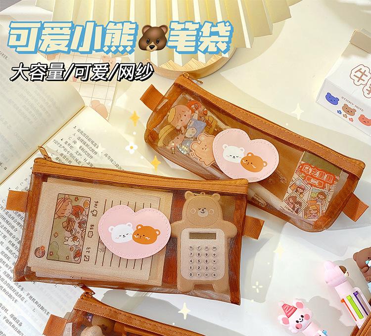 Estuche de malla con diseño de oso, estilo japonés, elegante y práctico, para estudiantes de primaria, gran capacidad, para guardar lápices.