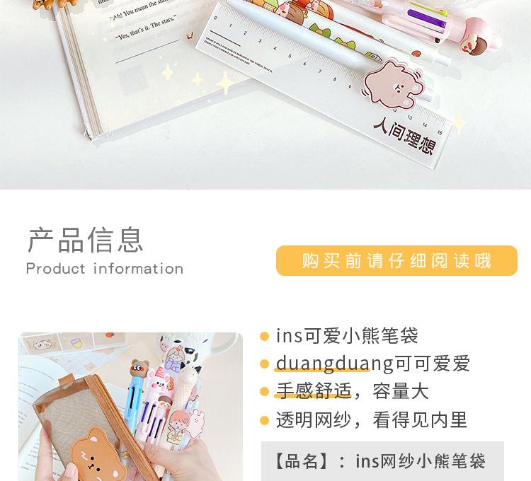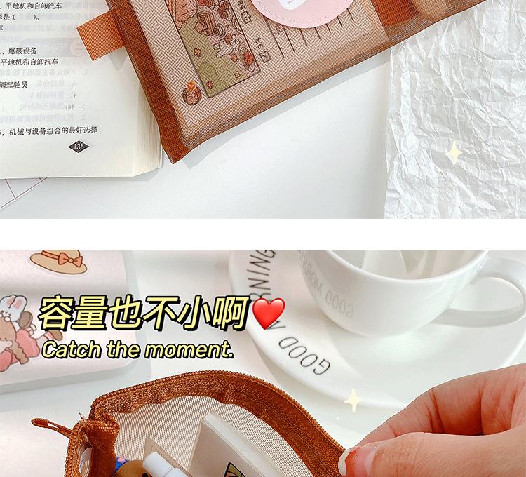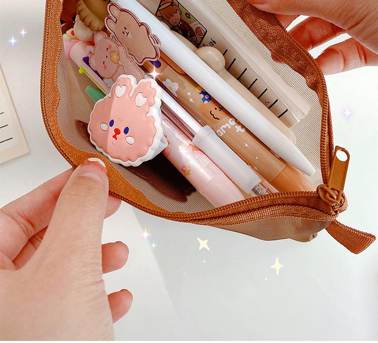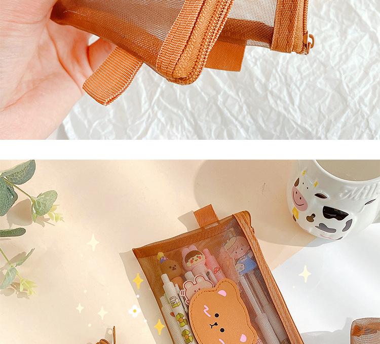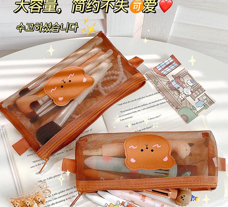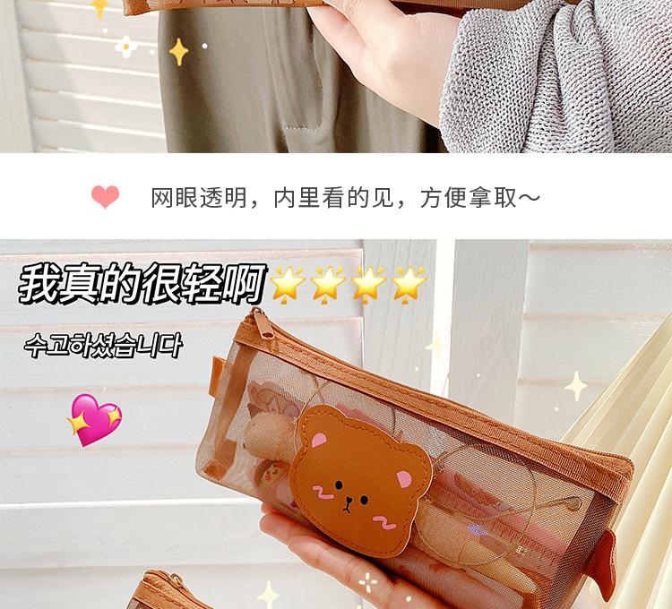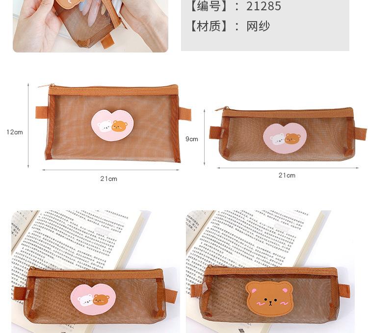 Estuche de malla con diseño de oso, estilo japonés, elegante y práctico, para estudiantes de primaria, gran capacidad, para guardar lápices.