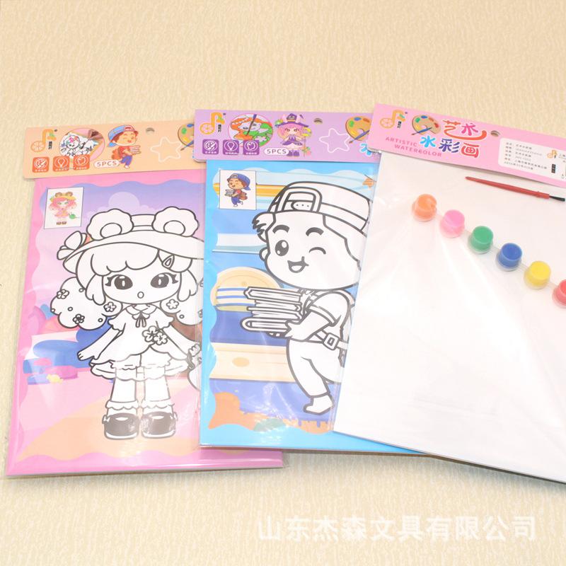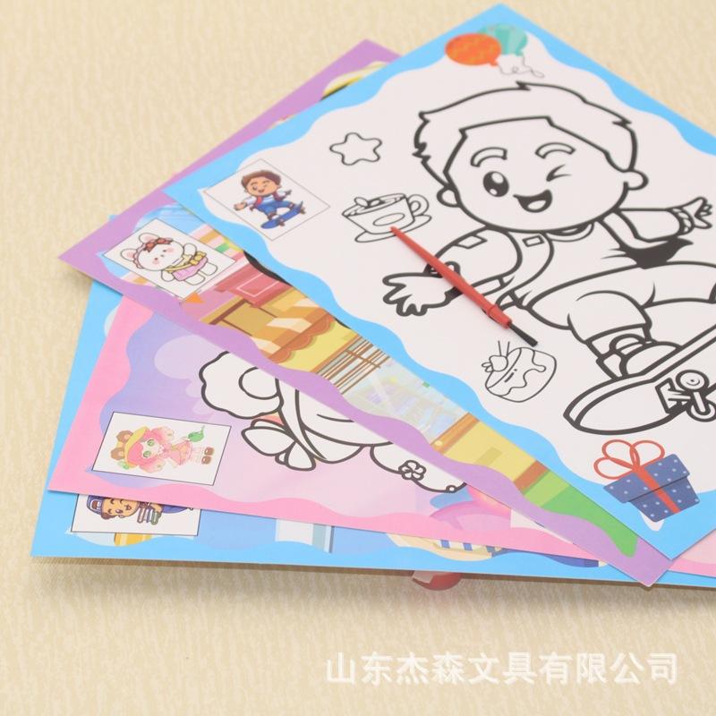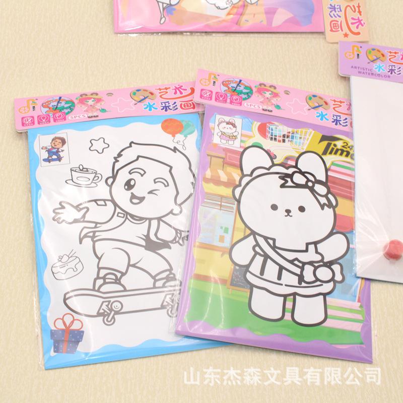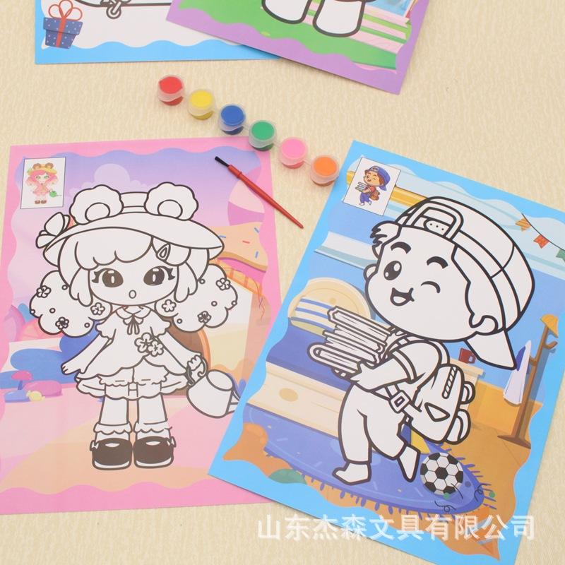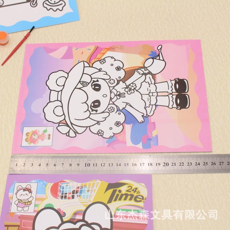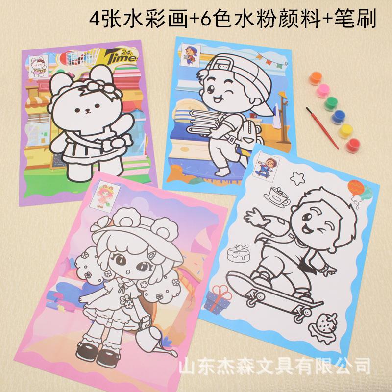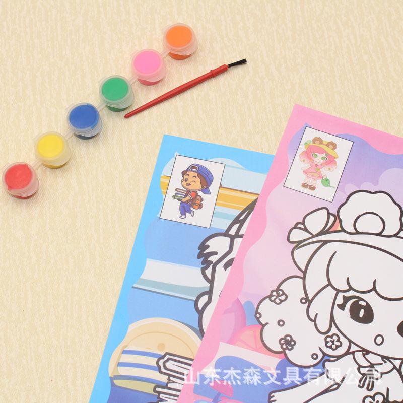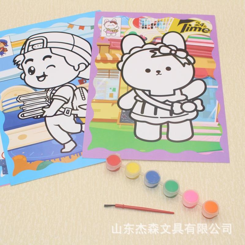 【Encuadernación】: 4 plantillas para colorear + 6 colores de pintura + pincel/bolsa
