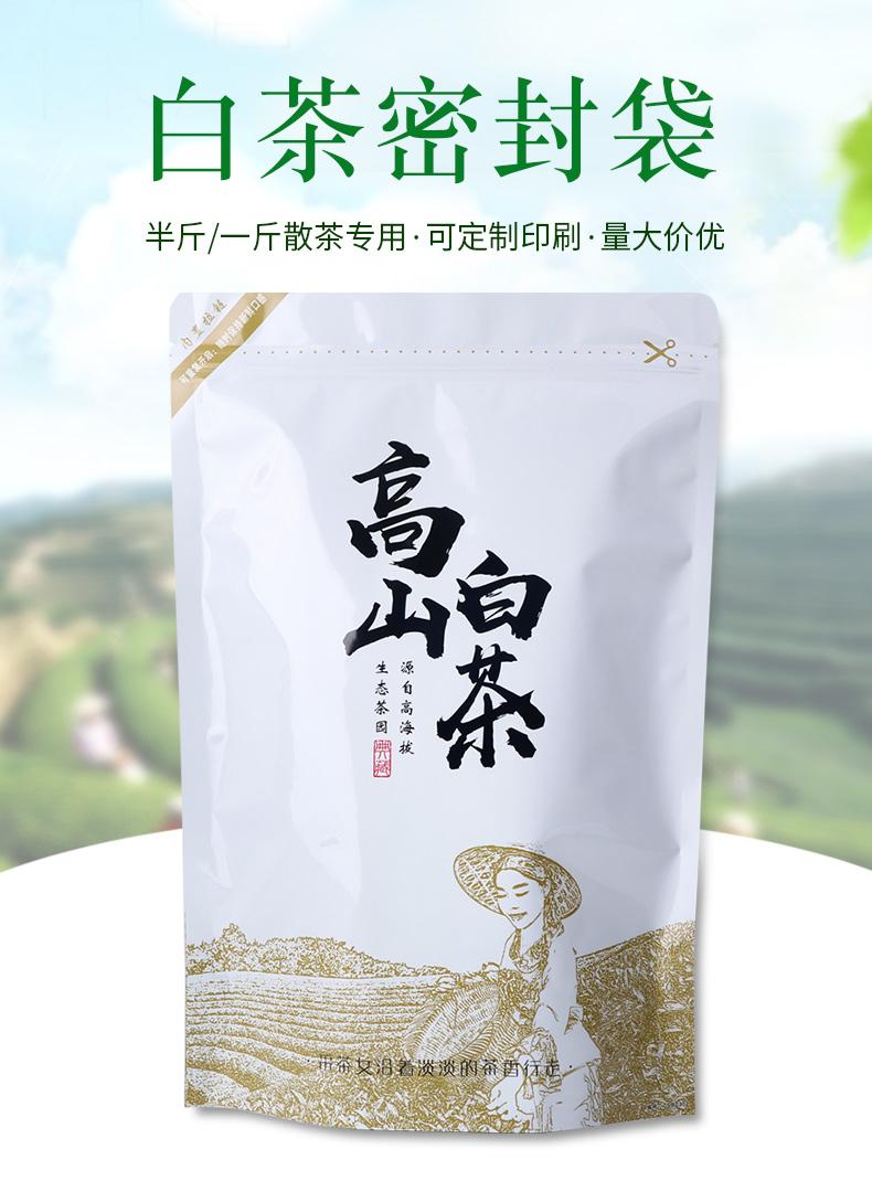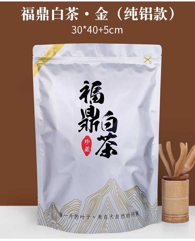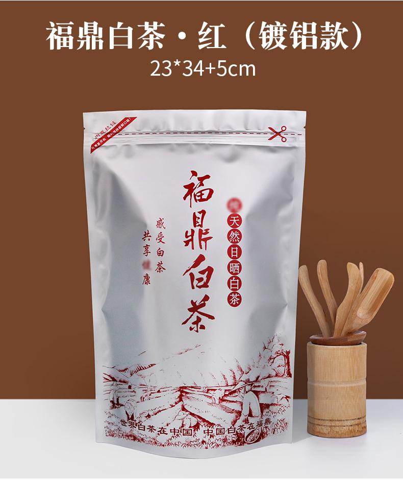 Bolsa de Té Blanco Fuding 500g Té a Granel Bolsa de Papel Aluminio Empaque de Té Media Libra Bolsa Sellada con Cierre Ziploc Paquete Pequeño