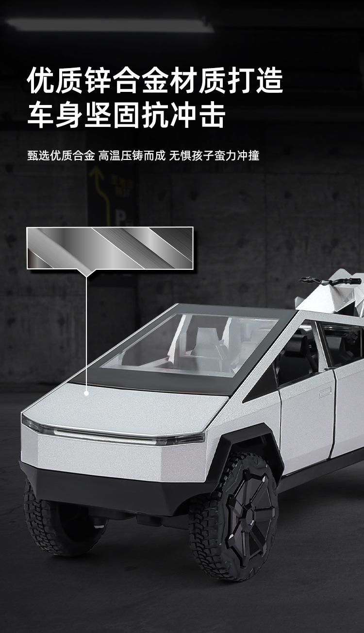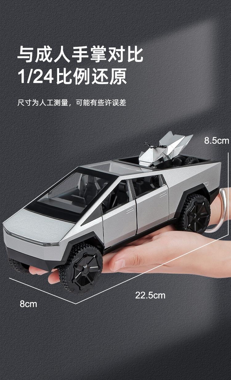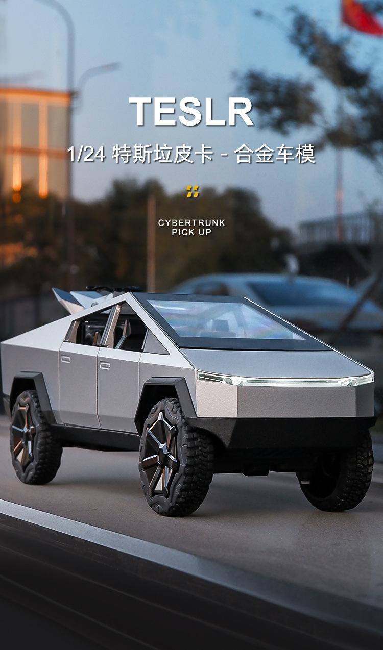 1:Camioneta todoterreno Tesla de 24 pulgadas, modelo de coche de juguete de aleación de simulación, colección de adornos para regalo de cumpleaños de niños