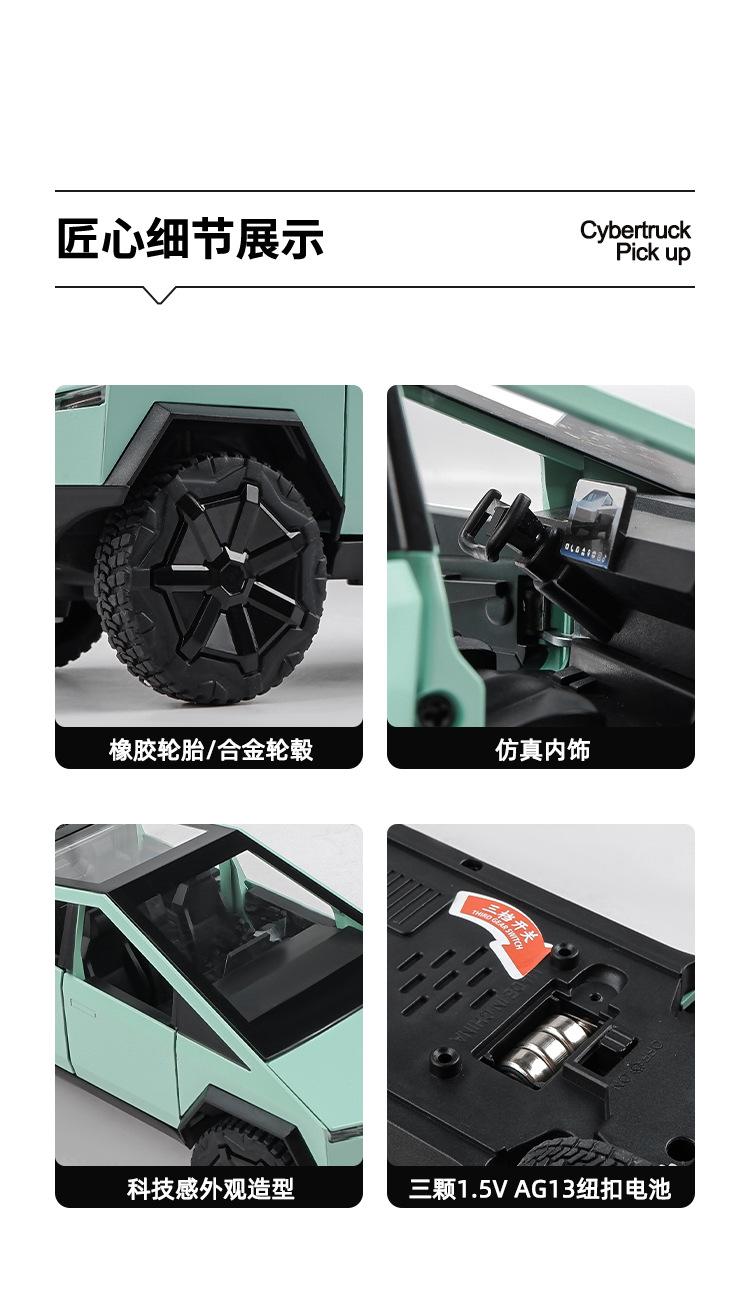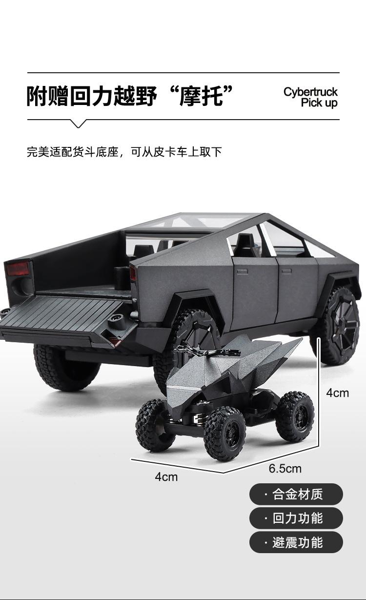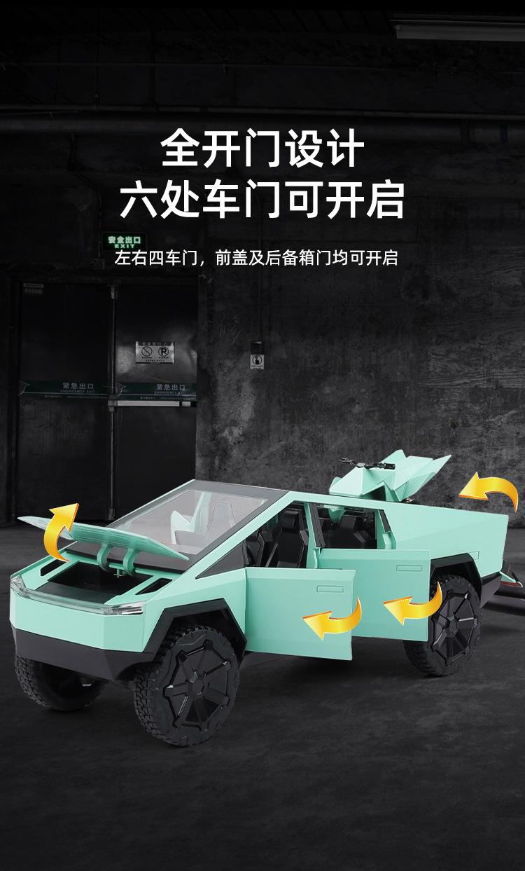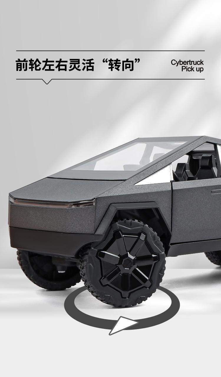 1:Camioneta todoterreno Tesla de 24 pulgadas, modelo de coche de juguete de aleación de simulación, colección de adornos para regalo de cumpleaños de niños