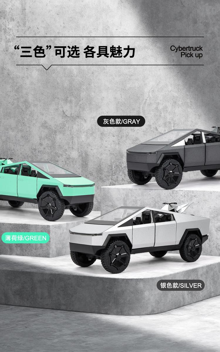 Tesla Pickup-Silver, Tesla Pickup-Green, Tesla pickup-dumb black