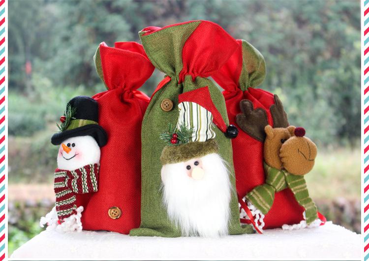 Nuevos Suministros de Decoración Navideña Bolsa Tote Pequeña de Lino Bolsa de Manzana Bolsa de Regalo Bolsa de Dulces Ambiente Festivo