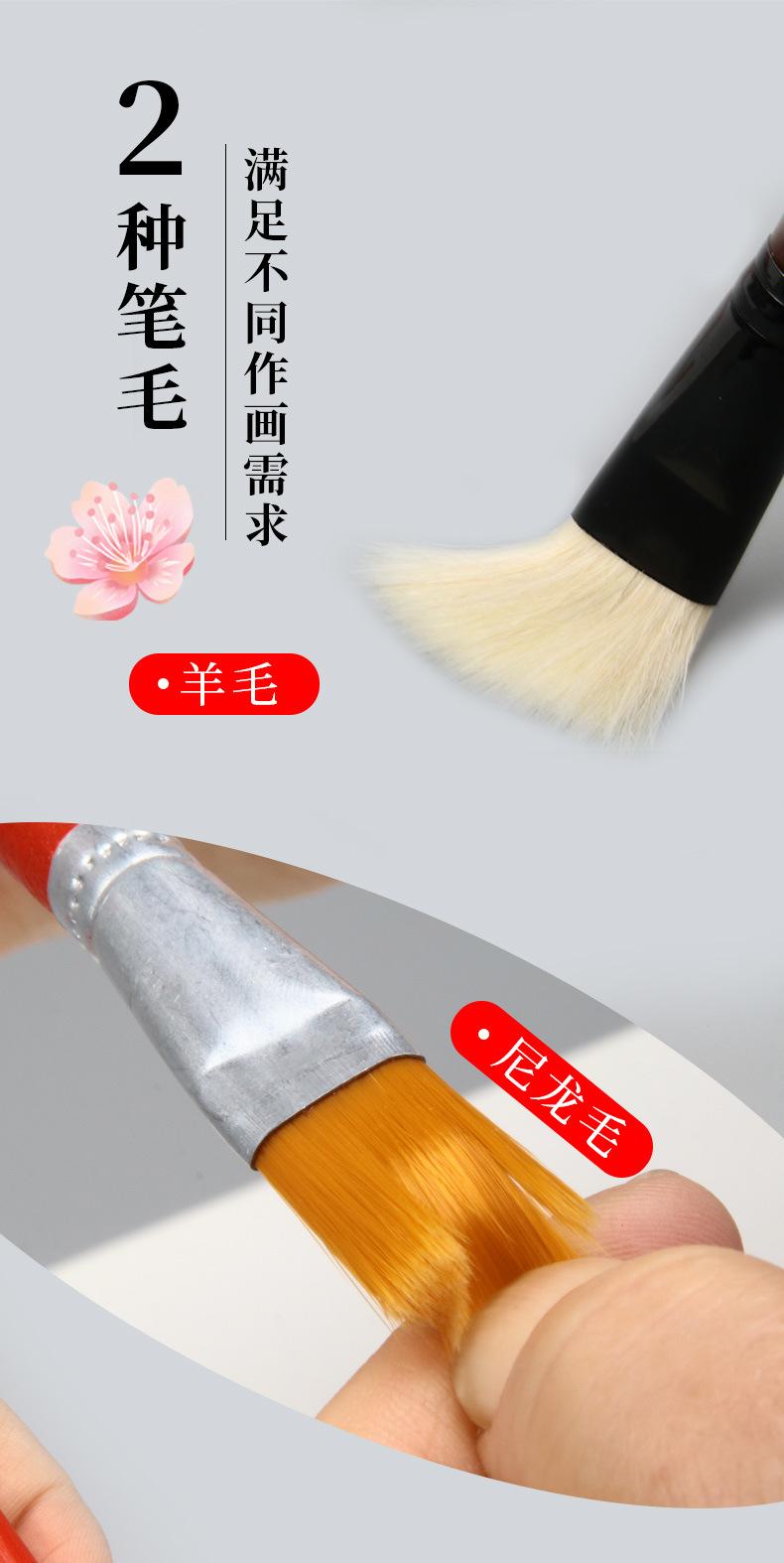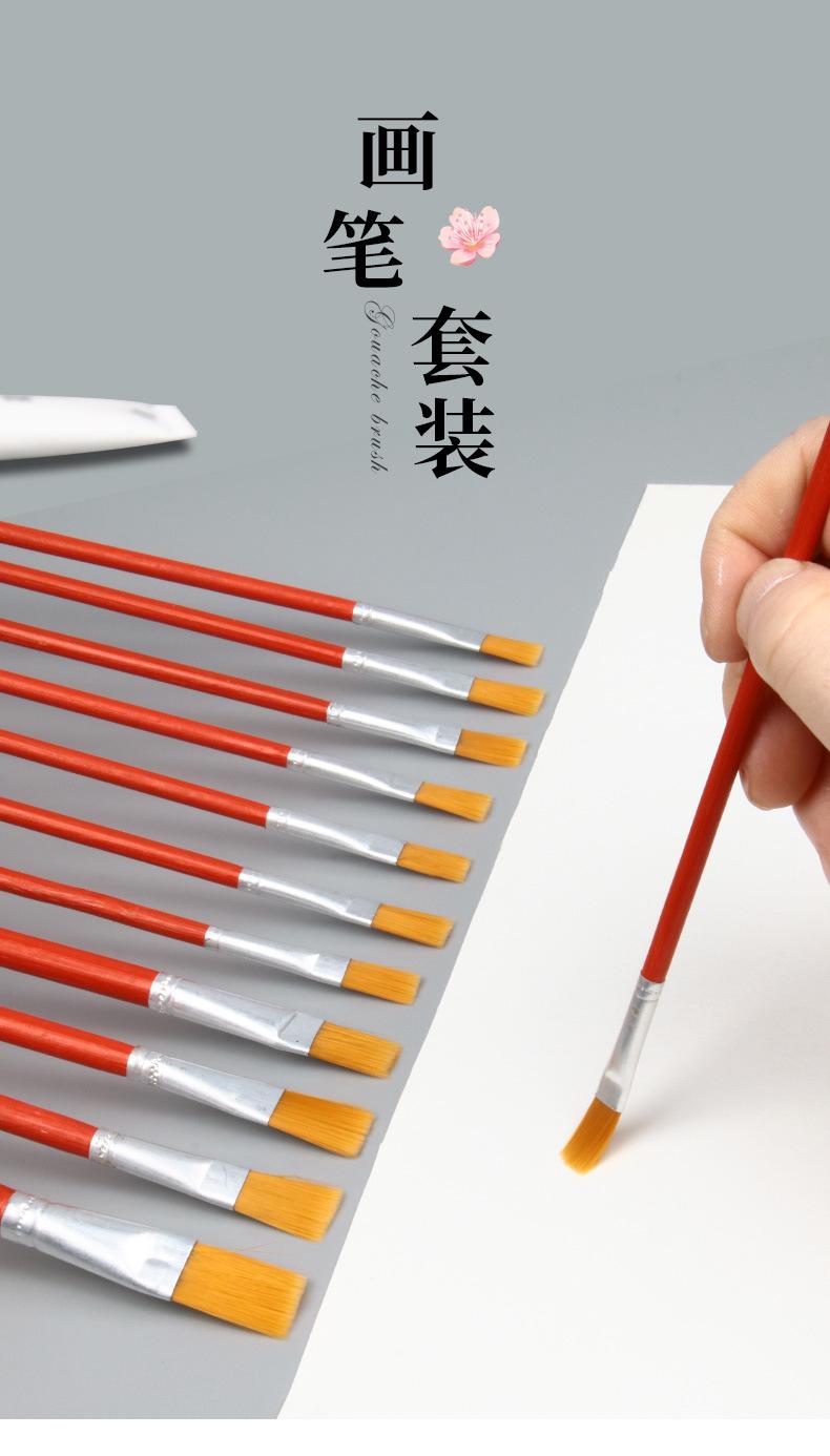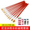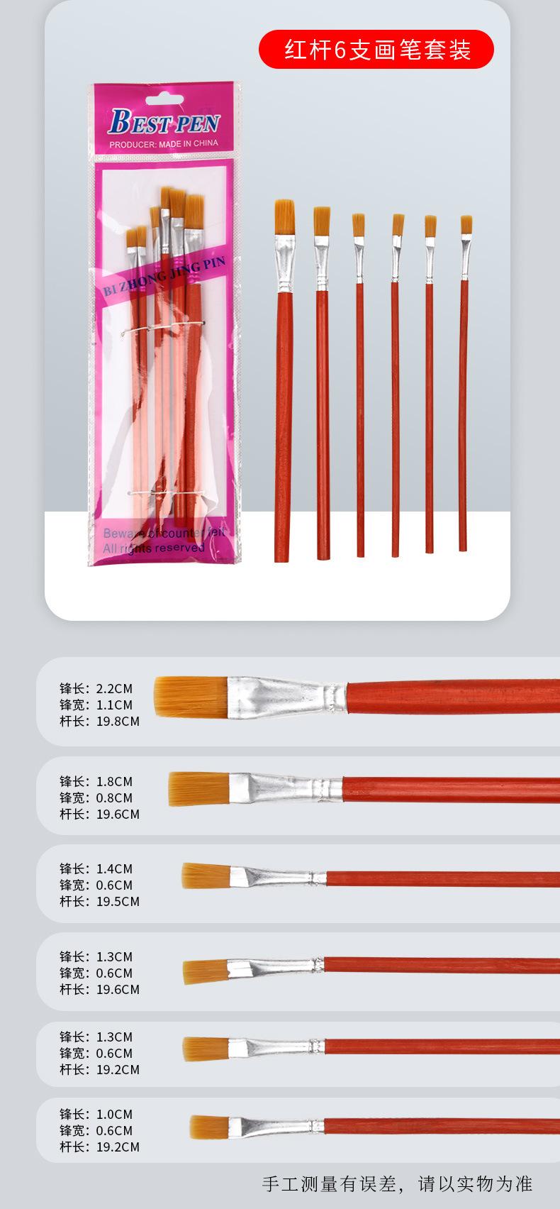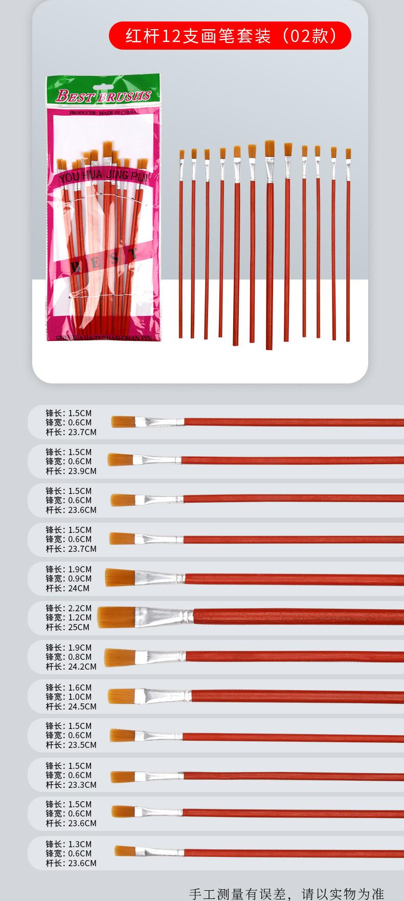 Pinceles al por mayor Transfronterizos 12 Piezas Set de 6 Piezas Mango Rojo Gouache Acuarela Pincel Acrílico Pincel Mango Marrón Pincel de Lana