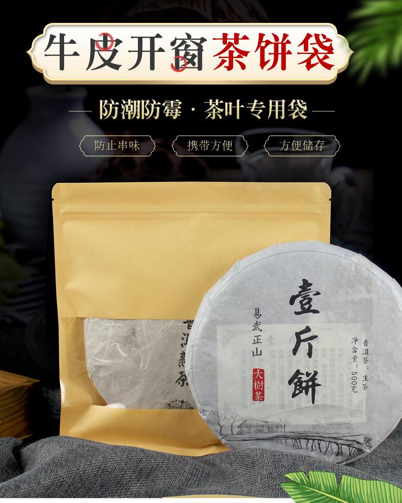 Bolsa de té de papel kraft transparente con ventana abierta, bolsa para pastel, bolsa de té Pu'er, bolsa autosellante, bolsa para almacenar té, bolsa sellada para empaque de té