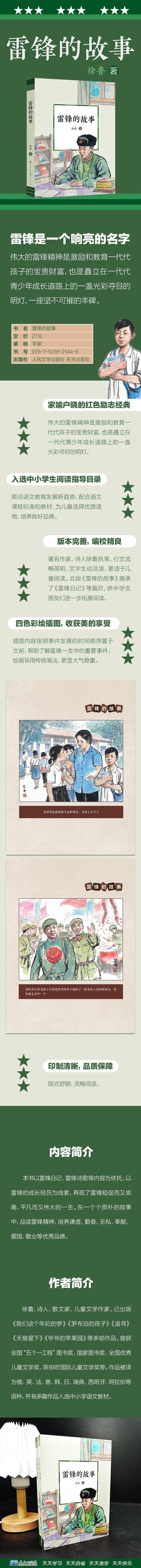 Este libro se basa en el diario, poemas y otros contenidos de Lei Feng, y en su experiencia de crecimiento personal como clave para reproducir su corta pero noble vida, ordinaria pero grandiosa. En cada sencilla historia, se puede apreciar el espíritu de Lei Feng y cultivar excelentes virtudes como la humildad, la diligencia, el altruismo, la dedicación, el patriotismo y el profesionalismo.