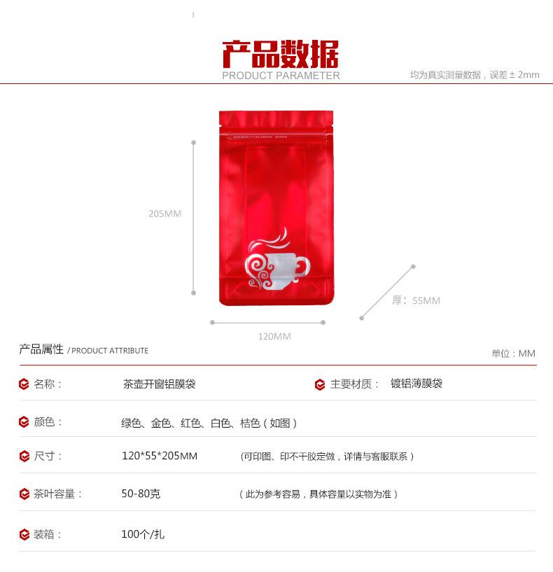 Bolsa de embalaje para alimentos, bolsa de aluminio para té, bolsa de película mate, bolsa autosellante, bolsa de película visual para ventana personalizada DIY, variedad multicolor