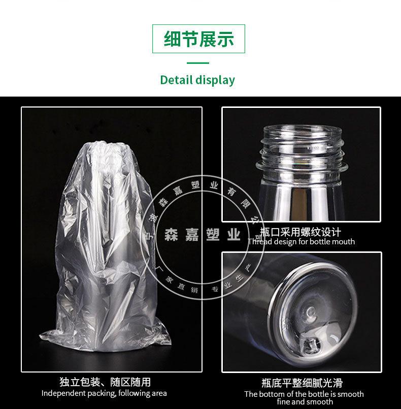 Botella de plástico para mascotas, botella de jugo de grado alimenticio, botella de bebida de 400 ml, botella de té con leche popular transparente, botella de plástico para té frío