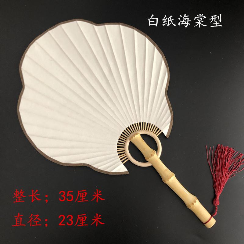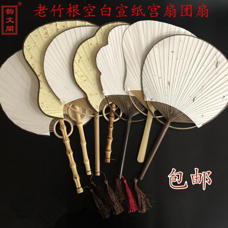 Varillas de abanico de bambú hechas a mano (raíz de bambú) + abanico de papel de arroz en blanco