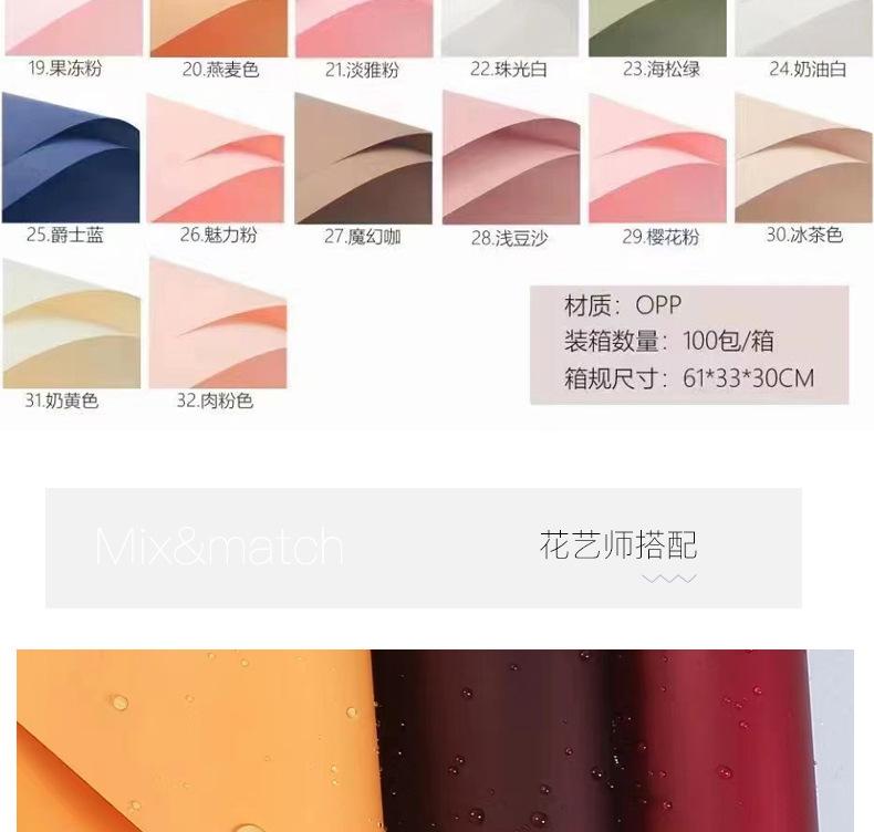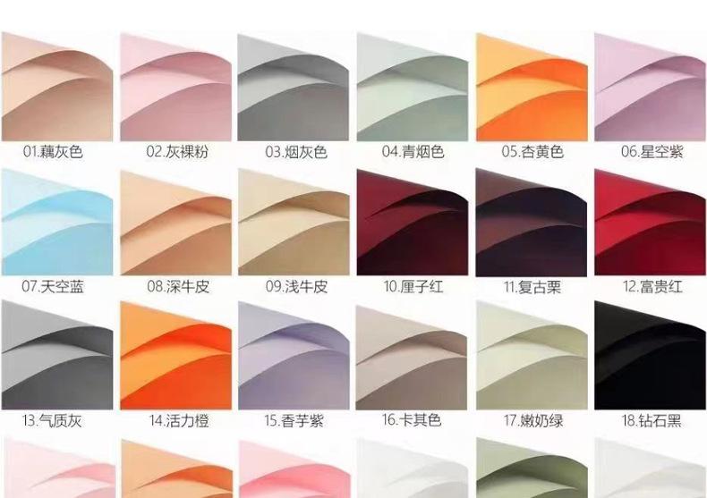 Papel para envolver flores, papel Ou Ya de color sólido, color sólido a doble cara, 100 paquetes por caja, 20 hojas por paquete, si necesita una gran cantidad, por favor contacte al servicio al cliente