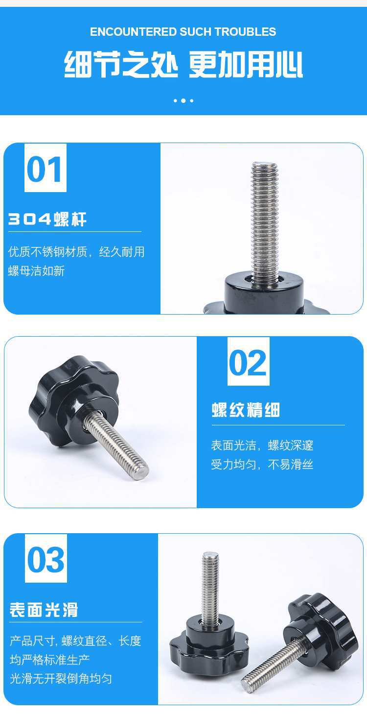 Tornillo de mango ciruela de acero inoxidable 304, tornillo de mano de baquelita, perno de cabeza de plástico de siete estrellas, perilla M68 con mango de estrella
