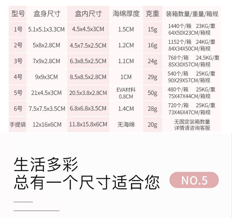 Handbag 11*12*6cm, Box no. 4 9*9*3cn, Box no. 3 7*9*2.8cm, No. 1 box 5.1*5.1*3.3cm, Box no. 6 7.5*7.5*3.5cm, Box no. 2 5*8*2.8cm