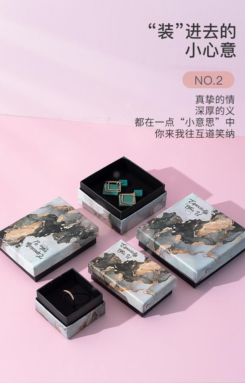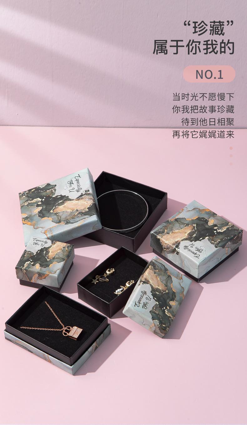Caja de embalaje para joyería de mármol negro, exquisita, para anillos, pendientes, pulseras y collares, venta al por mayor de fábrica