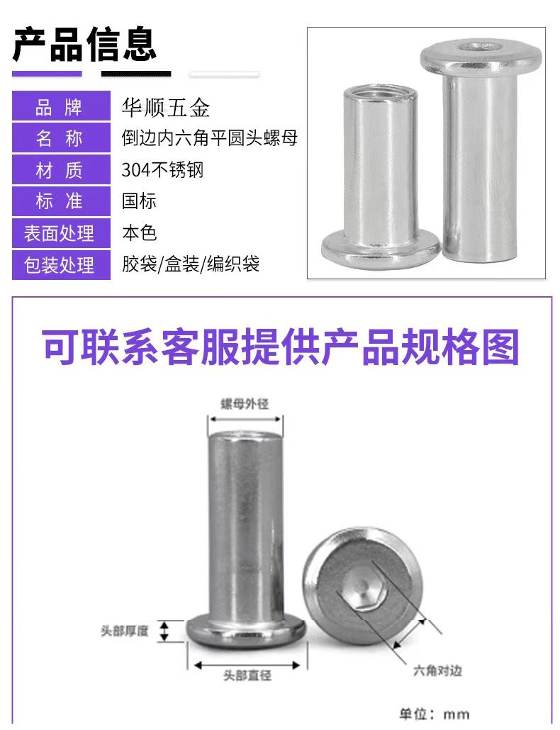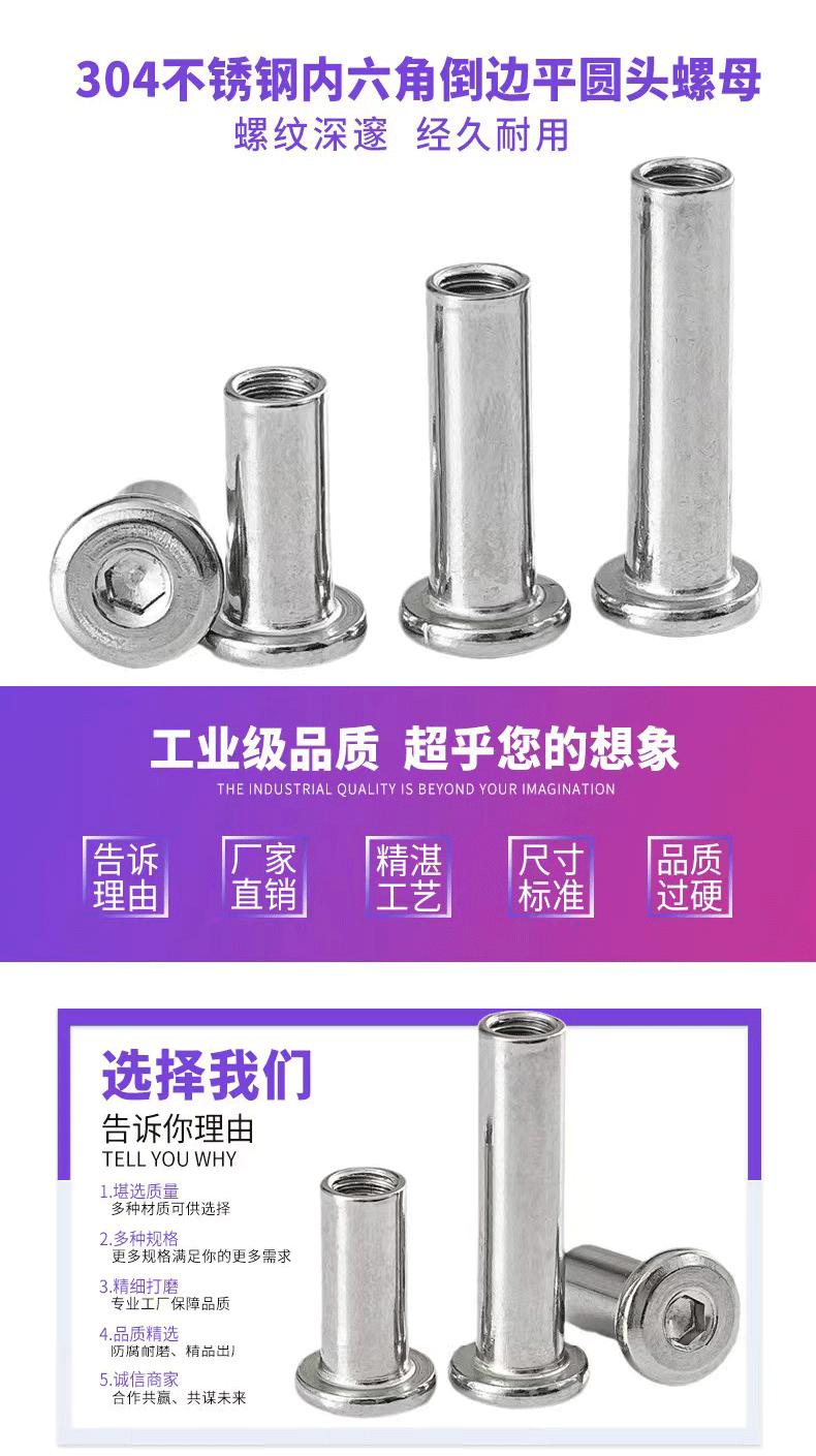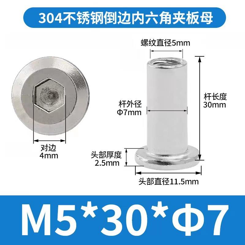 Tuerca de sujeción con hexágono interior biselado de acero inoxidable 304, tuerca de seguridad con par biselado, tuerca para tornillo de muebles M2 ~ M10