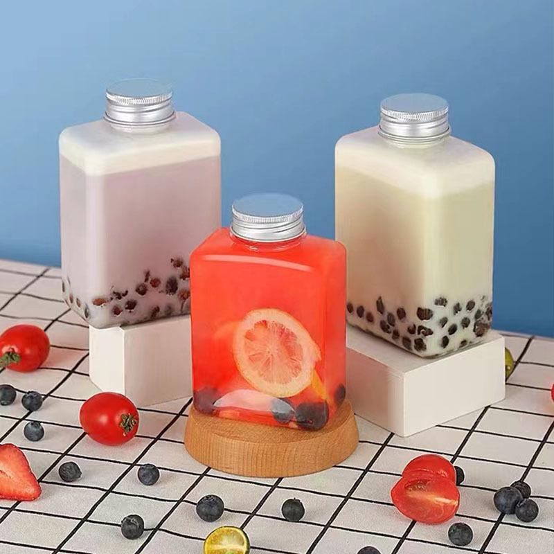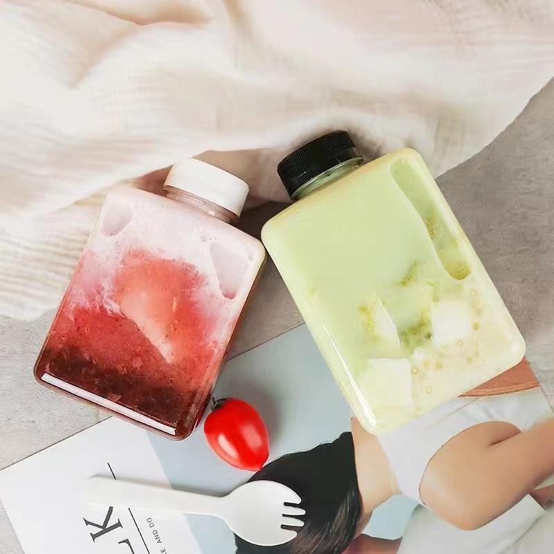 Botella cuadrada plana creativa de 500 ml, botella de plástico para jugo fresco, botella desechable para bebidas, botella de PET para leche, té y jugo, tío Qiu