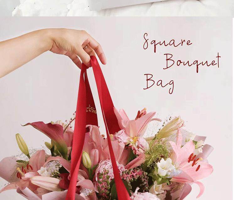Bolsa de flores cuadrada para ramo de flores, bolsa de embalaje para flores, bolsa de papel de regalo para arreglos florales cuadrados