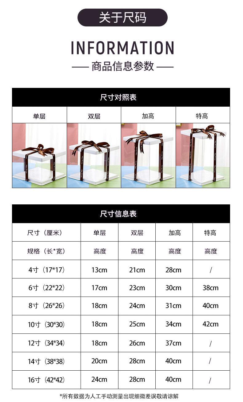 [50 Juegos] Caja de Embalaje para Pastel de Cumpleaños 4 Pulgadas 6 Pulgadas 8 Pulgadas 10 pulgadas 16 pulgadas Caja de Embalaje para Pastel Completamente Transparente