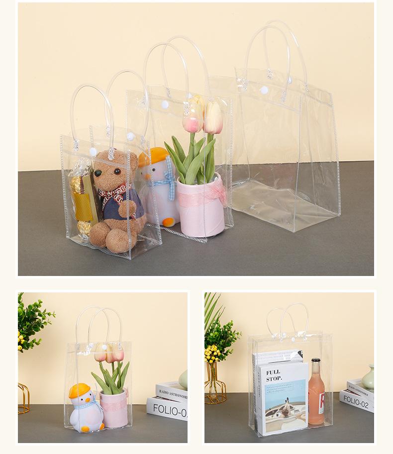 Bolso de Mano de Plástico Transparente de PVC con Lunares Rojo Vino Empaque de Flores Bolsa con Broche Bolsa de Regalo de Souvenir Venta al por Mayor