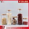 Frasco de Almacenamiento de Vidrio de Borosilicato Alto con Tapa de Bambú para Uso en la Cocina, Adecuado para Té, Granos de Café y Almacenamiento de Pulseras Transparentes