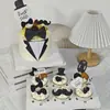 Tarjeta de pastel de cumpleaños con barba negra, pajarita, sombrero, traje, 10 complementos de decoración para pastel, diseño de mesa de postres
