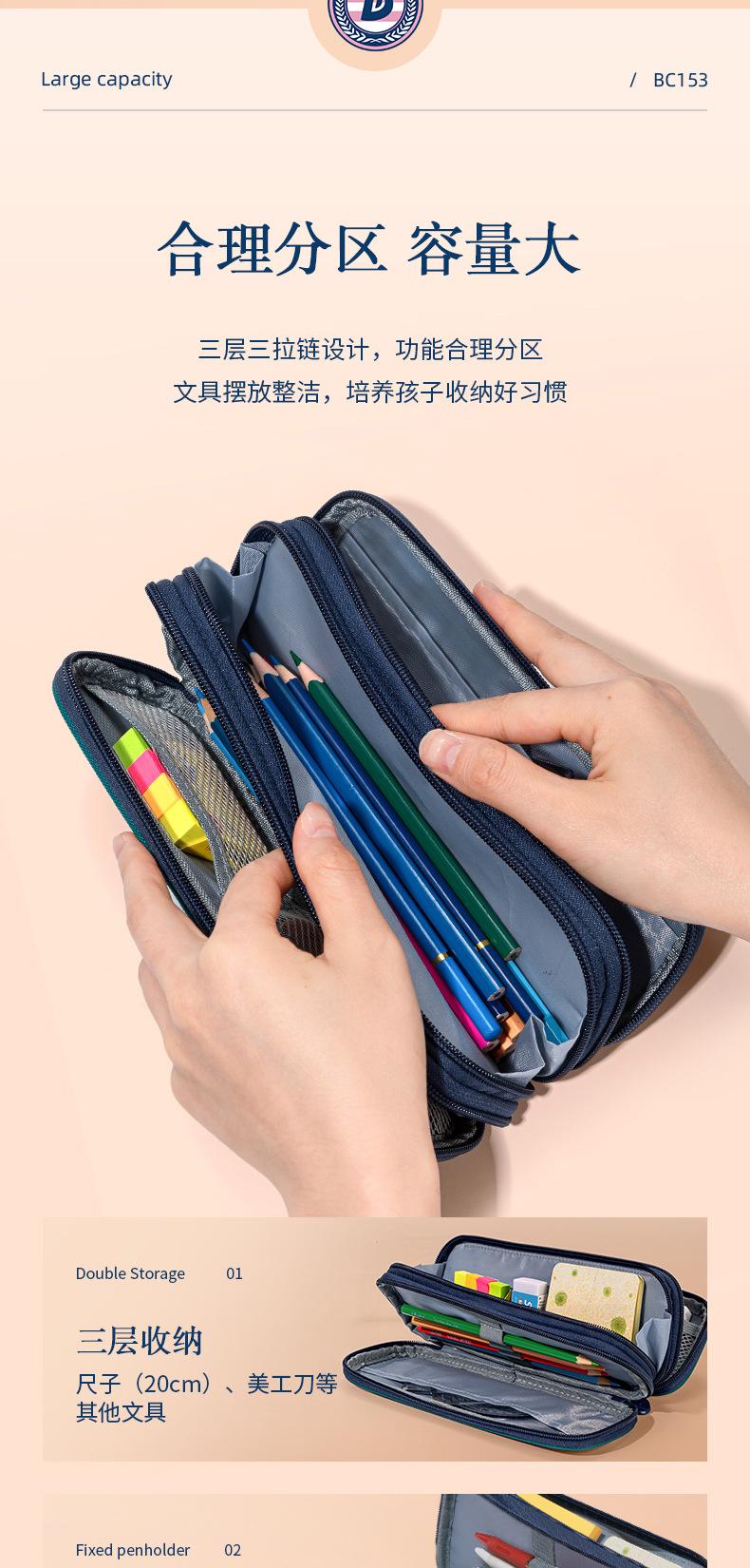Estuche Deli BC153 para lápices, sencillo, para estudiantes y niños, estuche multifuncional de gran capacidad con cremallera y bolsa de papelería