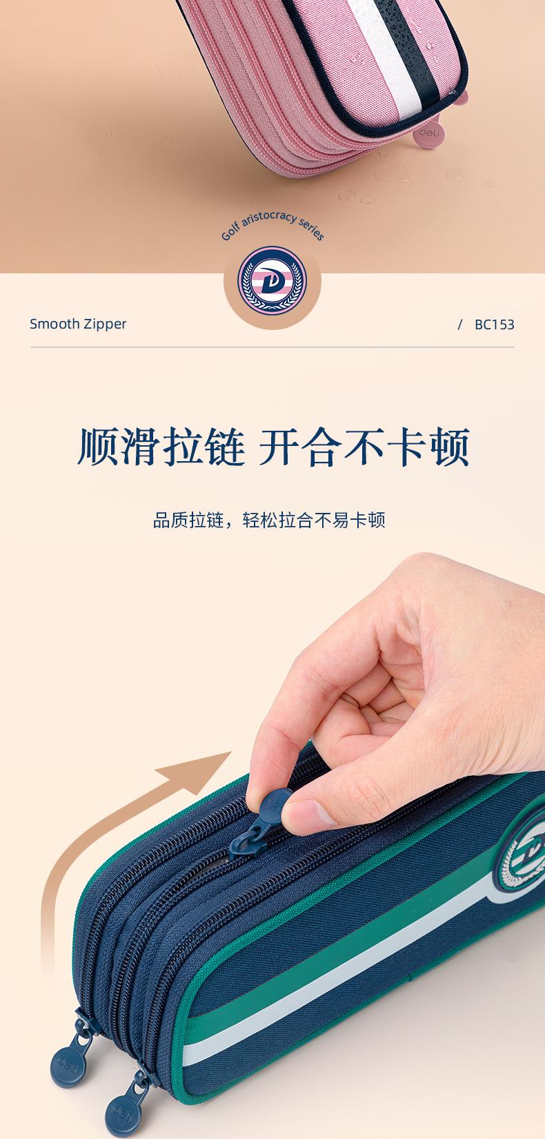 Deli BC153 golf three-zipper multi-purpose pencil case (mixed) (piece)