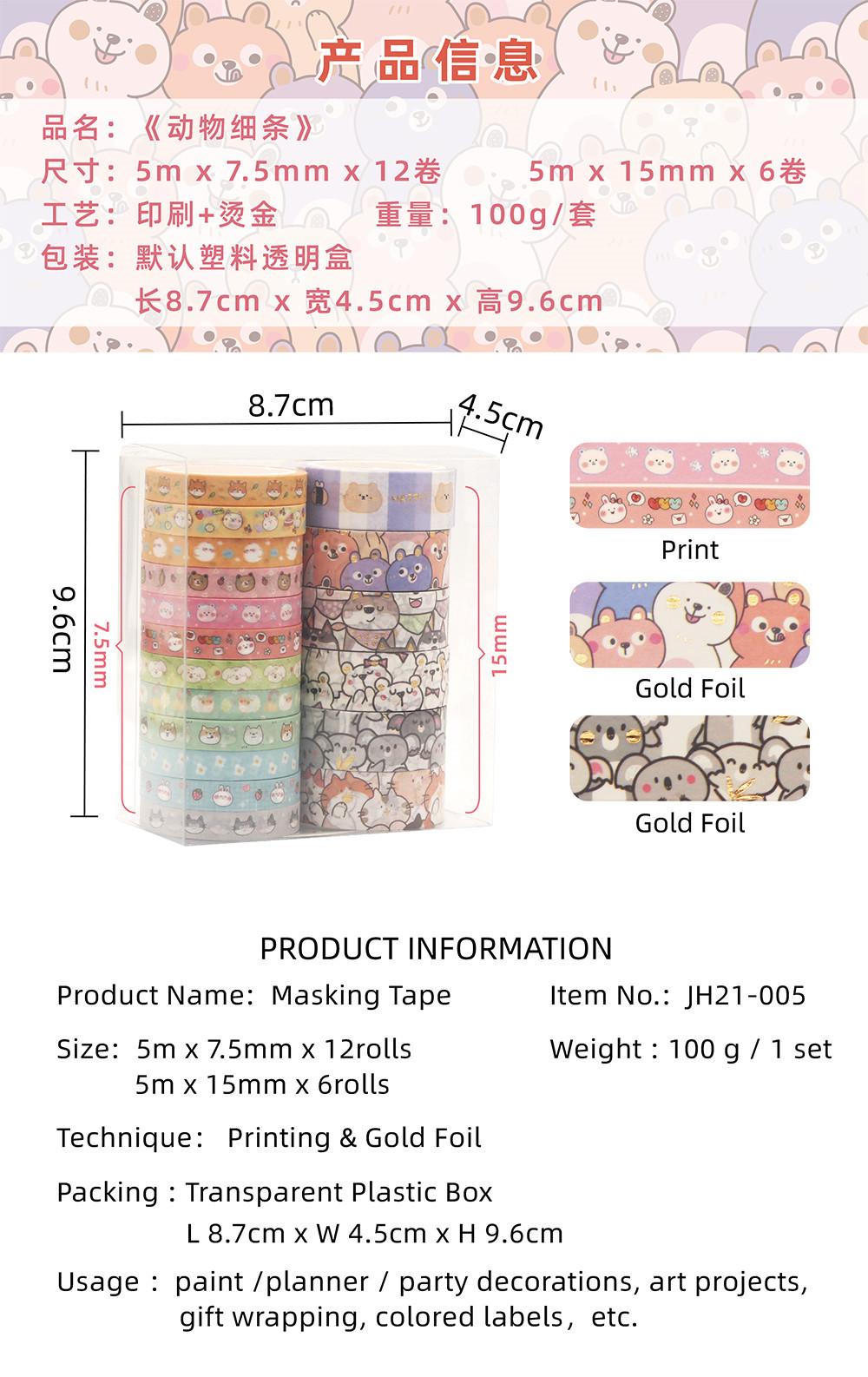 Suministro de Amazon Venta al por Mayor Transfronteriza Cinta Washi Decorativa DIY de Animalitos Lindos de Tiras Delgadas Estampada en Caliente Cinta de Bolsillo