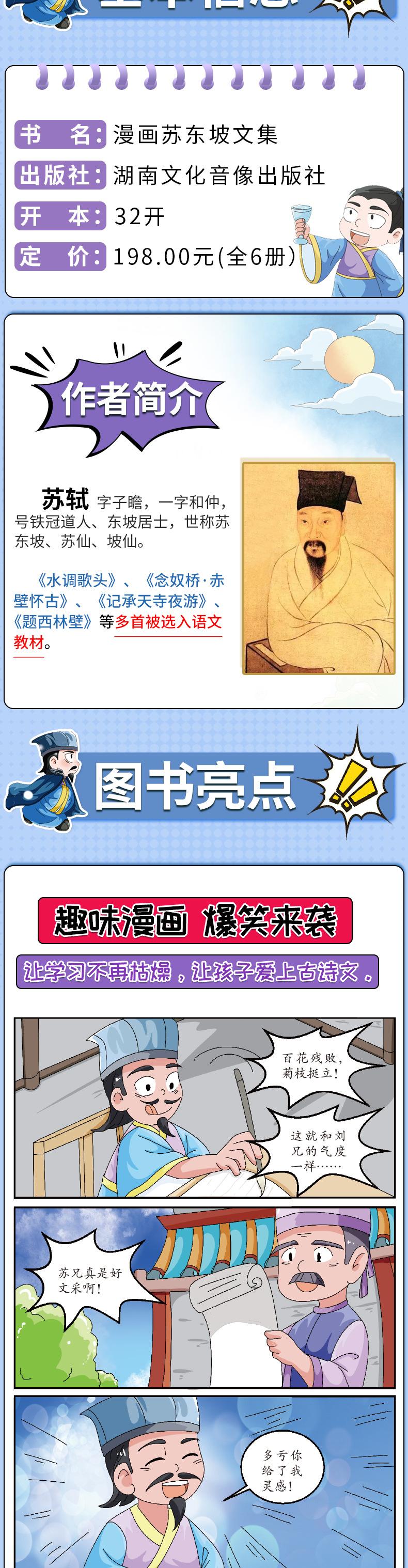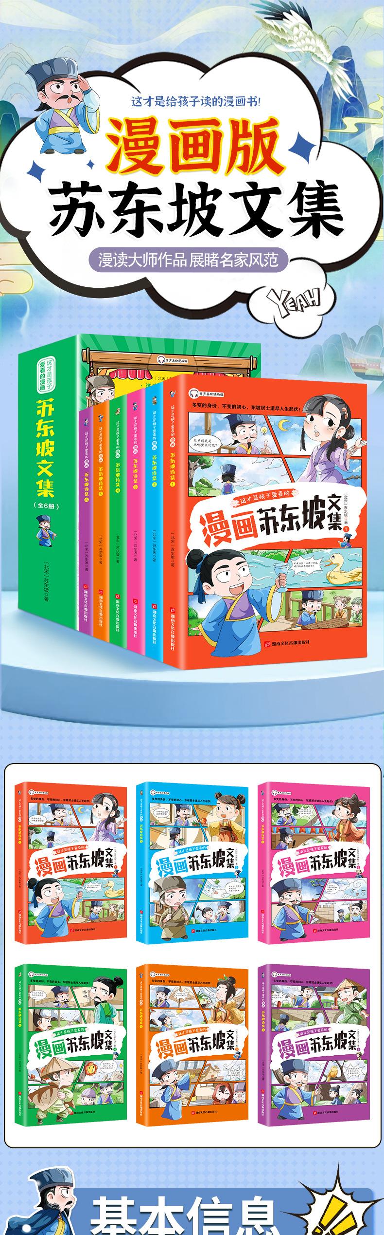 Esta es la colección de dibujos animados de Su Dongpo, un conjunto completo de 6 libros extracurriculares adecuados para estudiantes de escuela primaria.