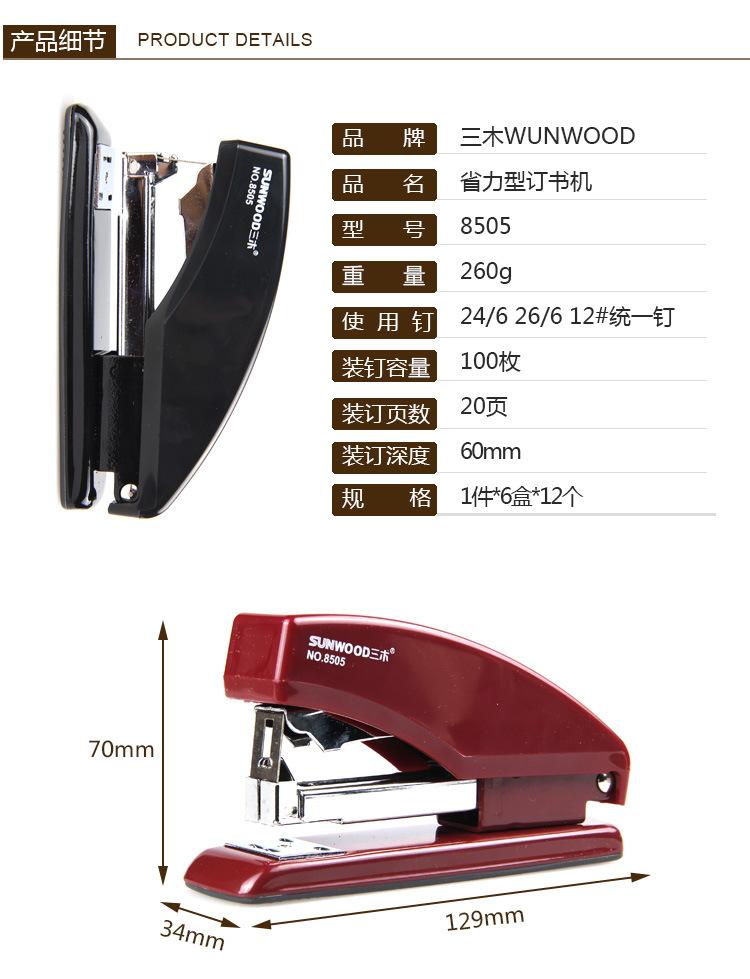 Grapadora de ahorro de mano de obra Sanmu 8505, máquina de encuadernación de oficina n.º. Grapadora de metal negra de 12 grapas