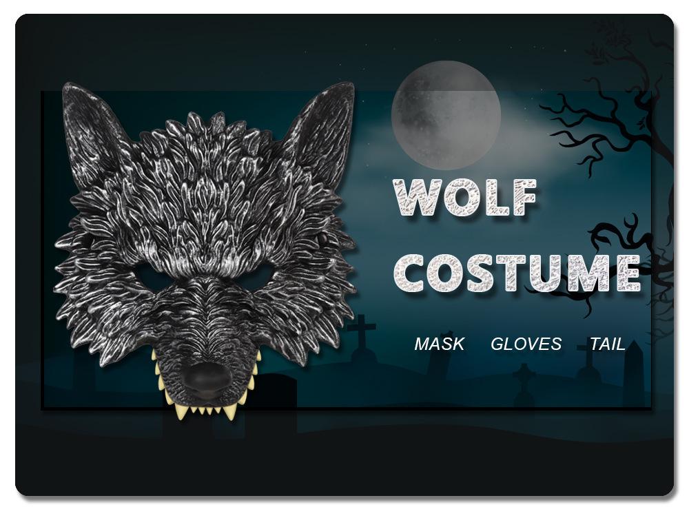Nuevo disfraz de lobo para Halloween, máscara, guantes, cola, cosplay, fiesta, accesorios de disfraz