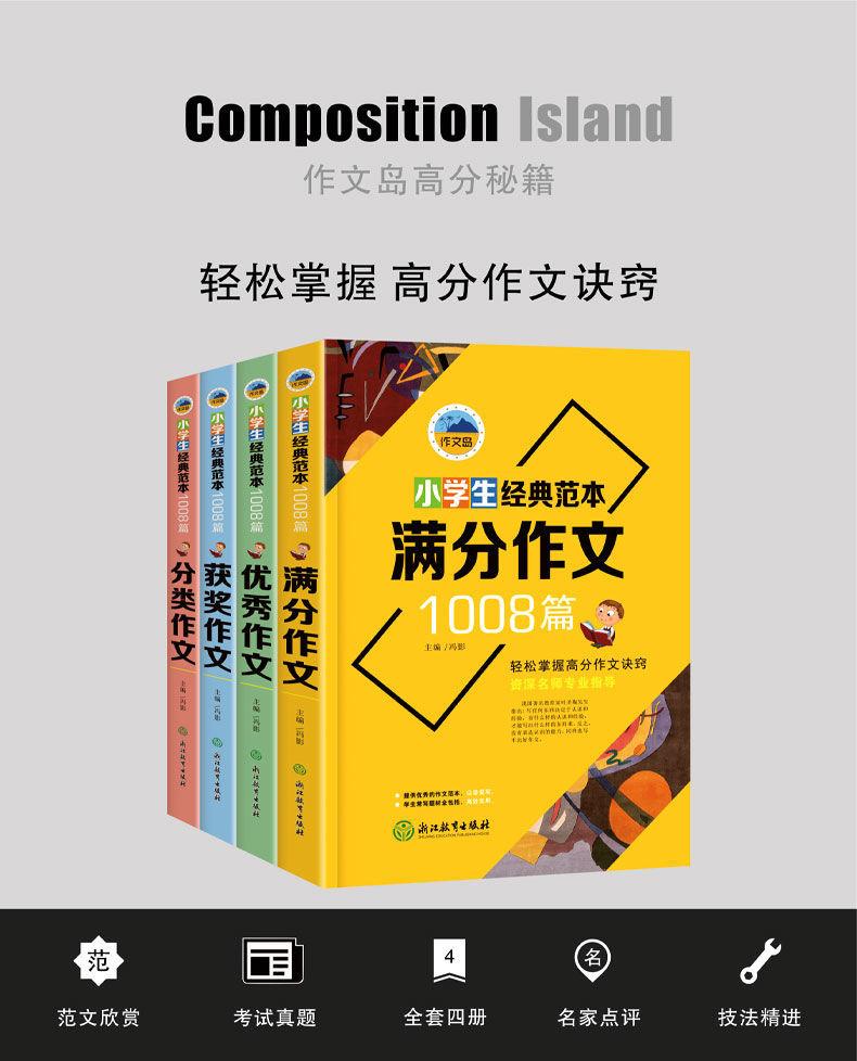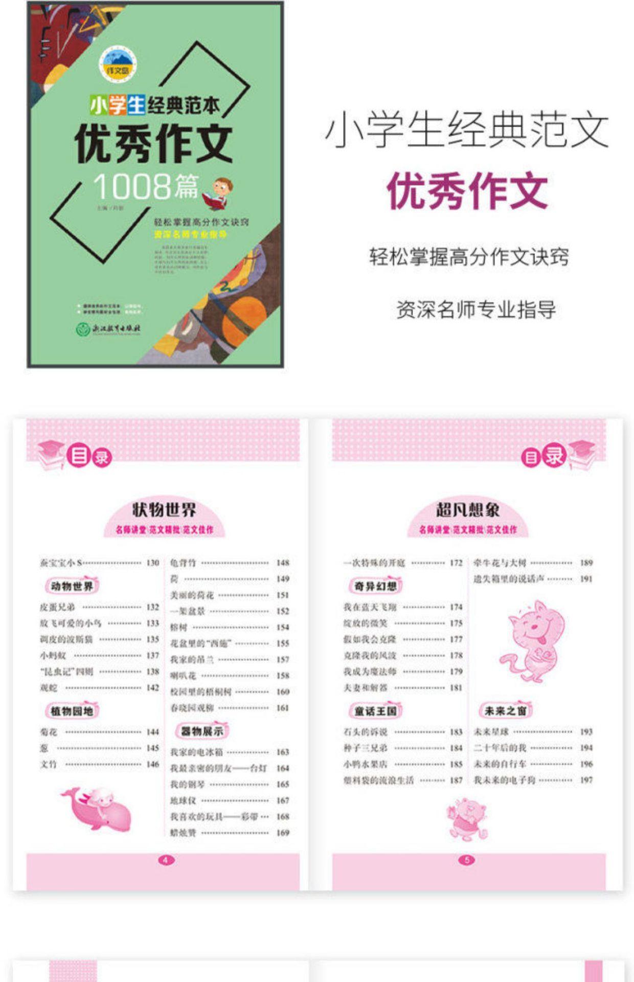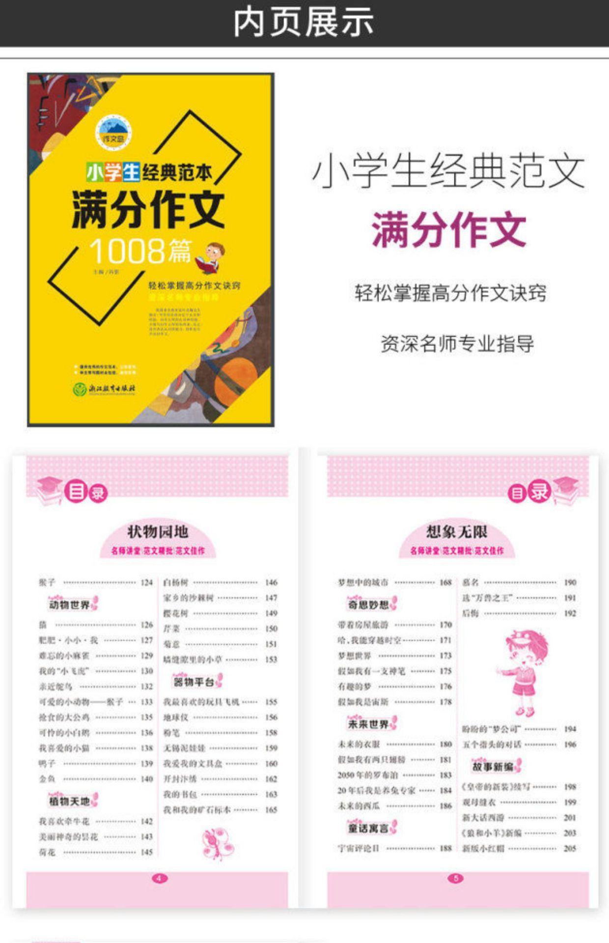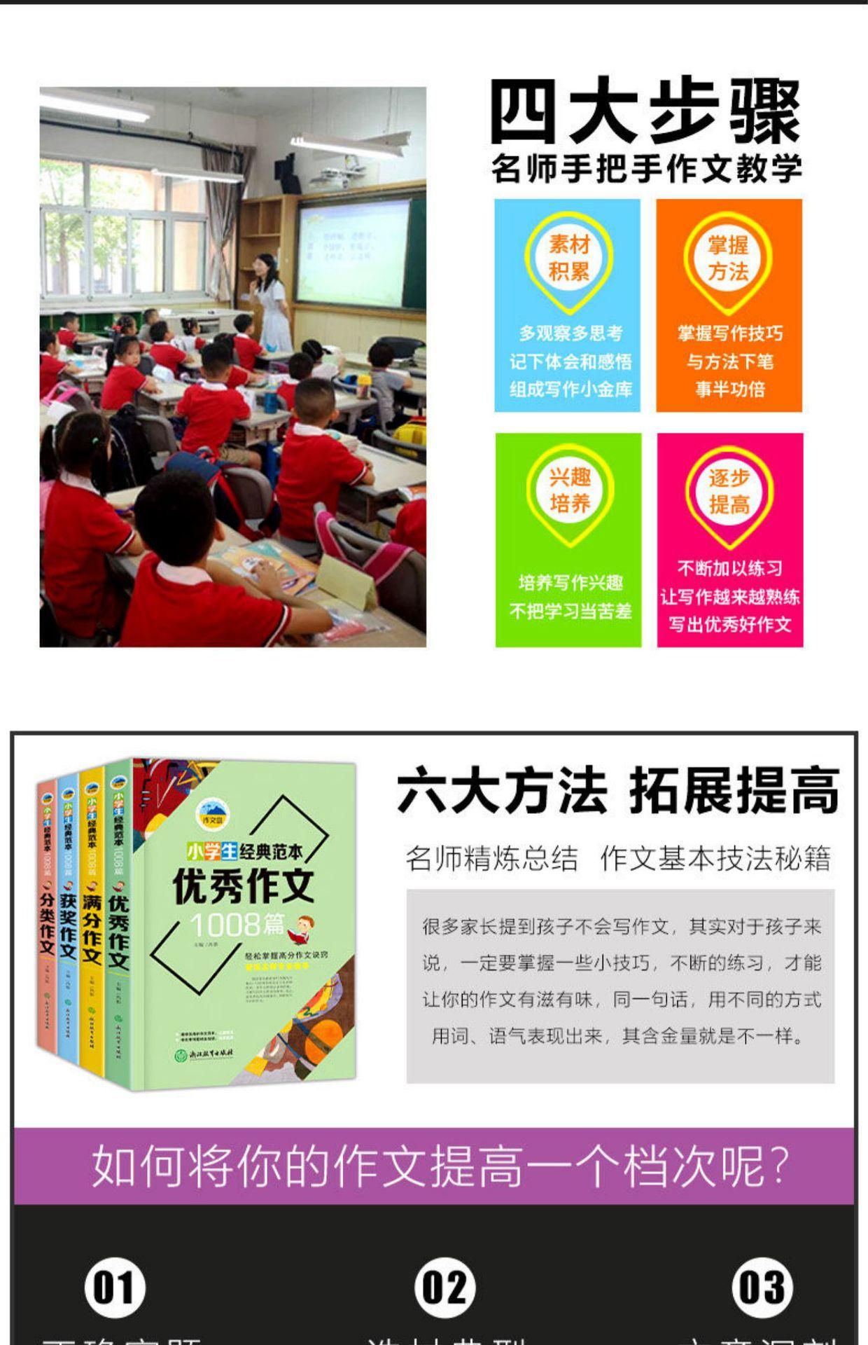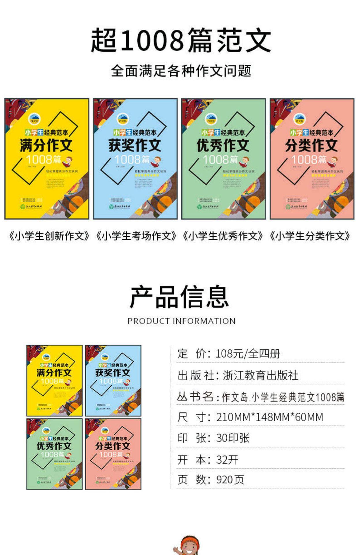 Composición de escuela primaria de 3.º a 6.º grado, conjunto completo de 4 volúmenes, ensayo clásico 1008, composición con puntuación completa, excelente clasificación de composición