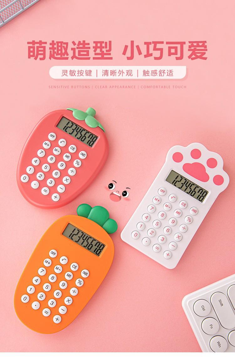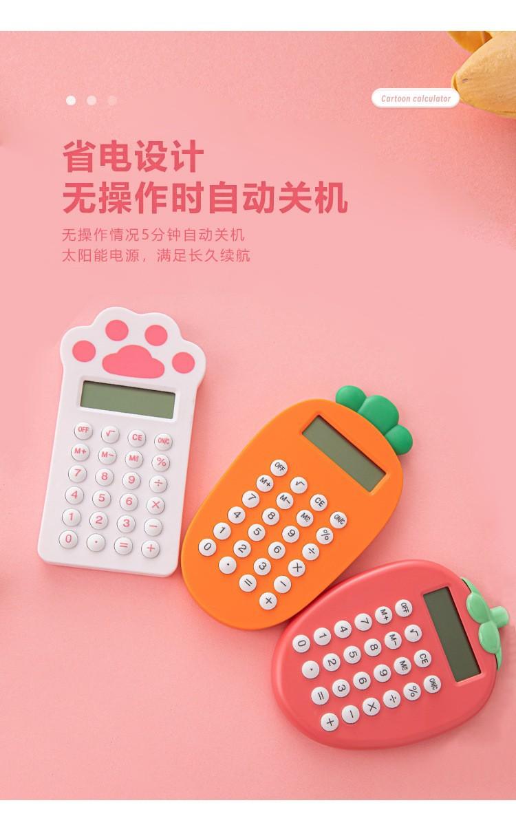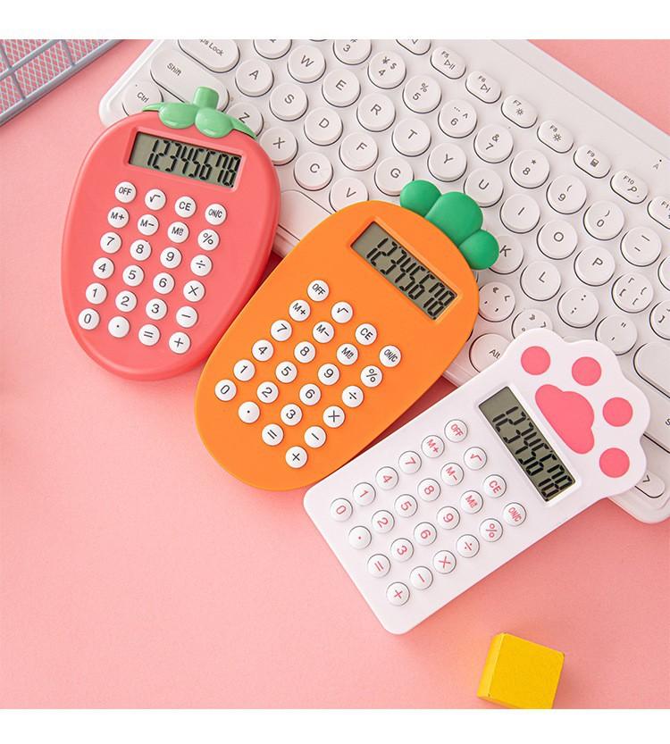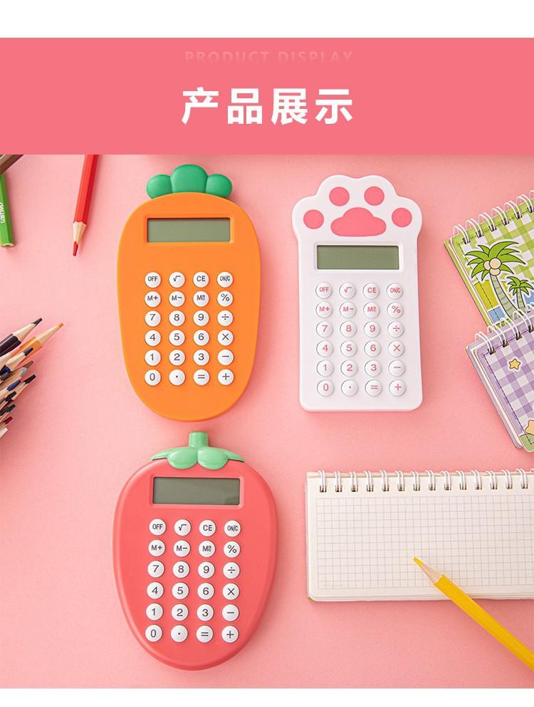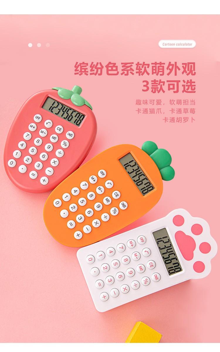 Mini calculadora creativa de dibujos animados con diseño de gato, rábano, fresa y papelería para estudiantes