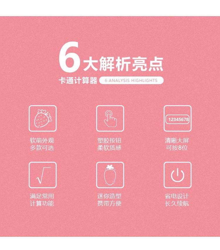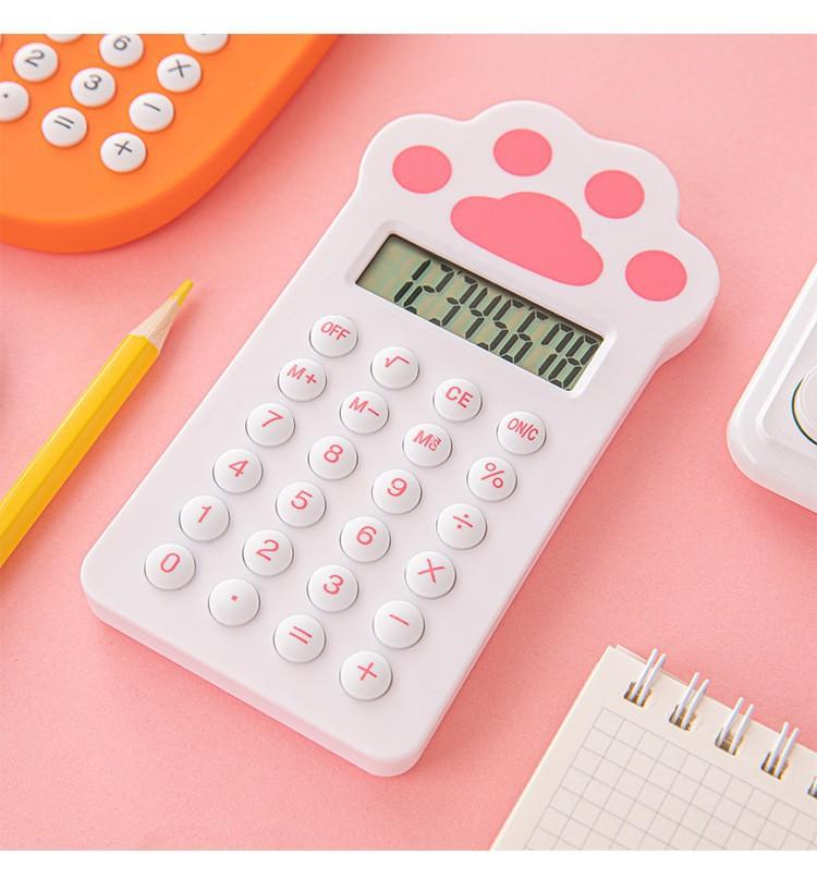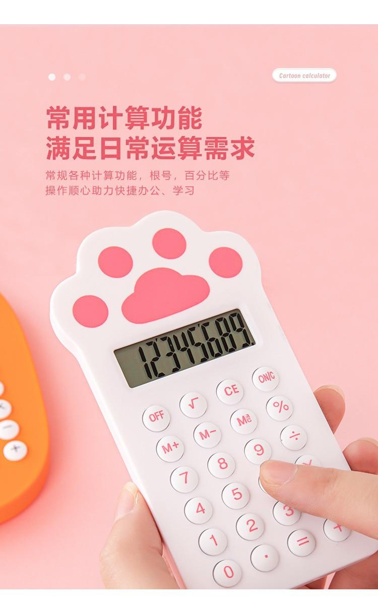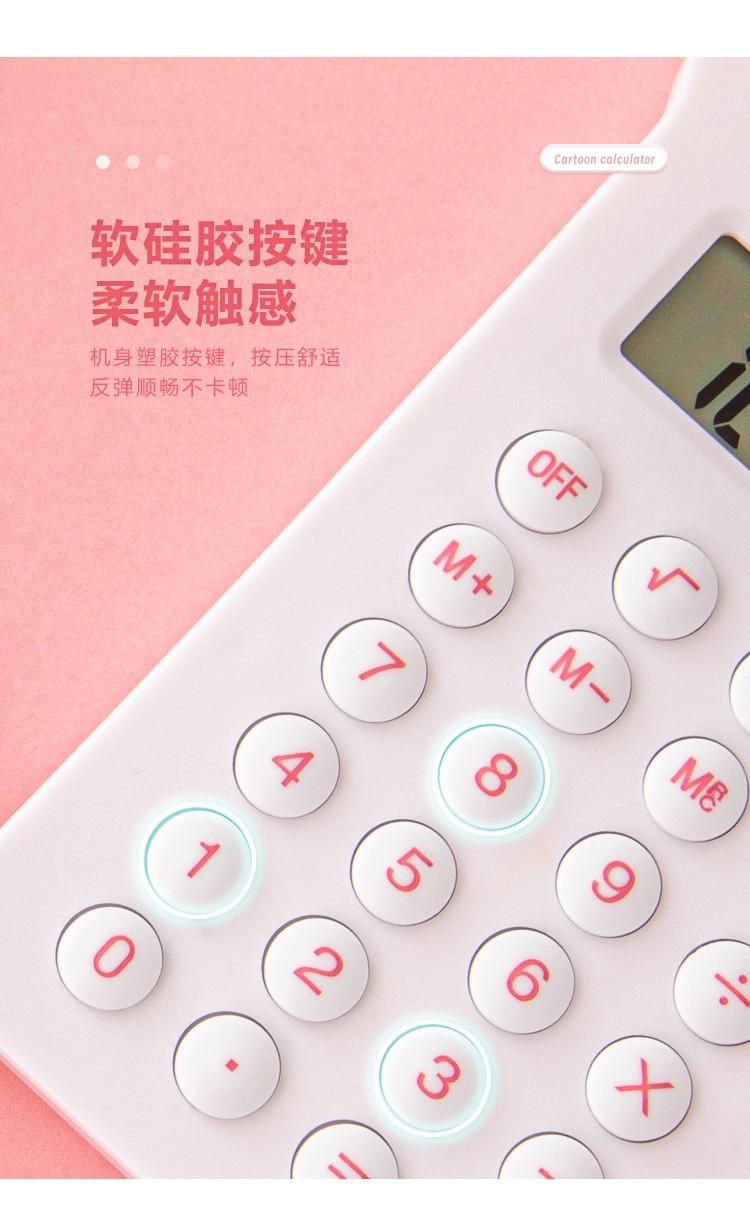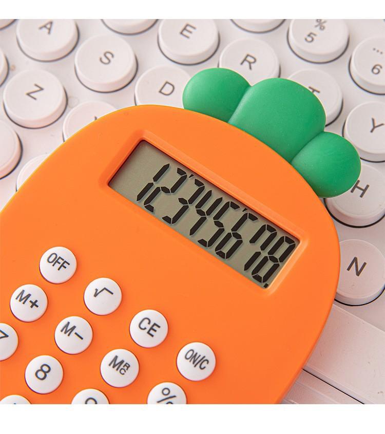 Mini calculadora creativa de dibujos animados con diseño de gato, rábano, fresa y papelería para estudiantes