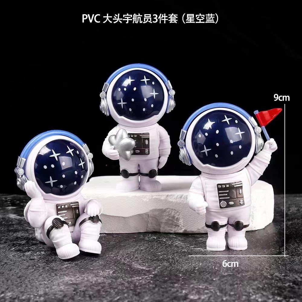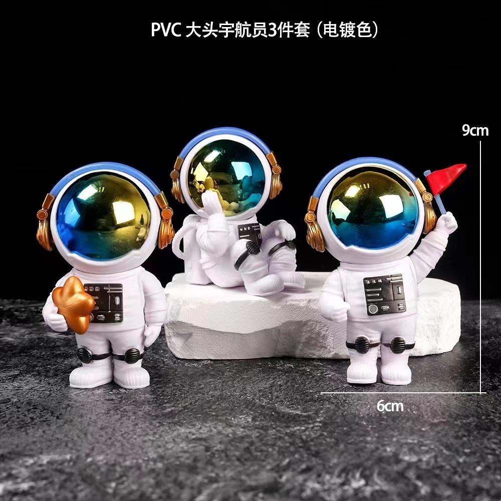 PVC big head astronaut 3-piece set-starry sky blue, PVC big head astronaut 3-piece set-electroplating color