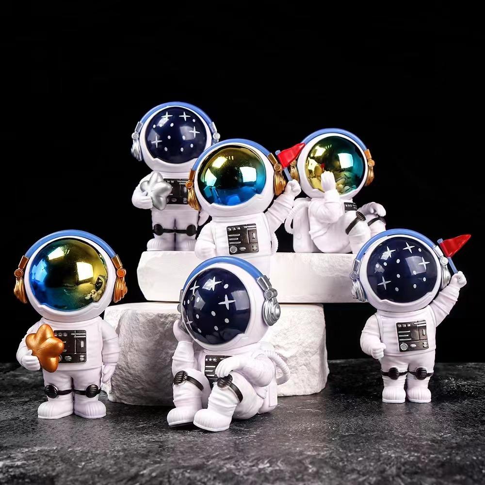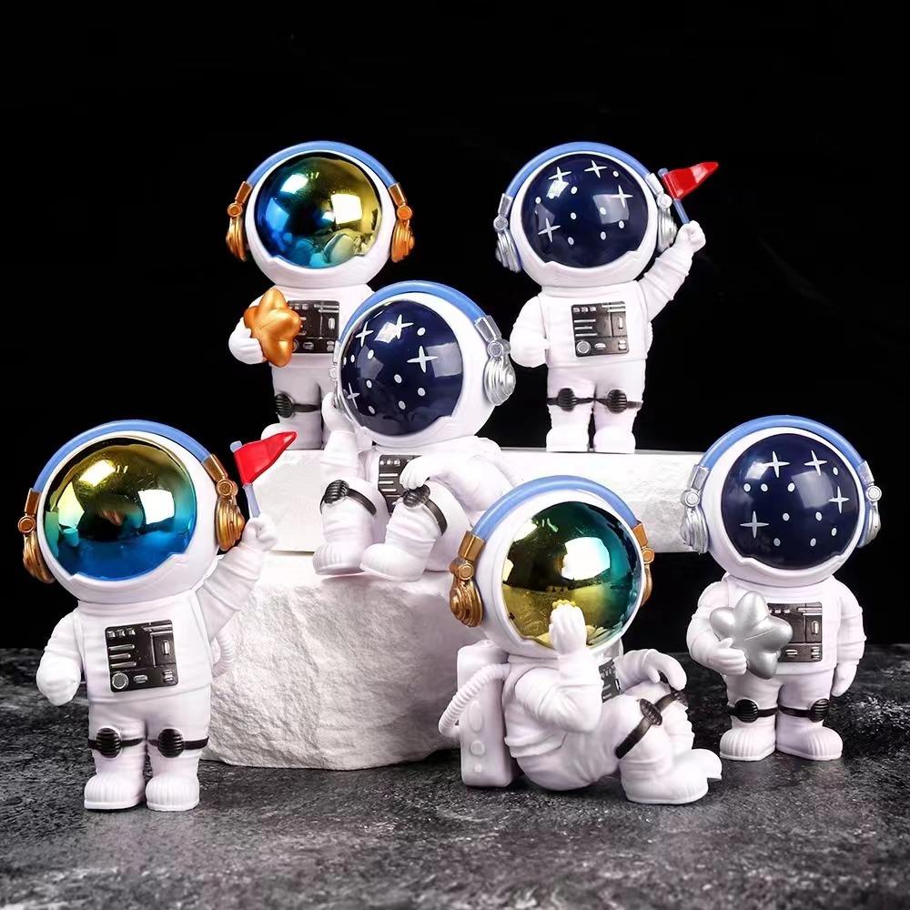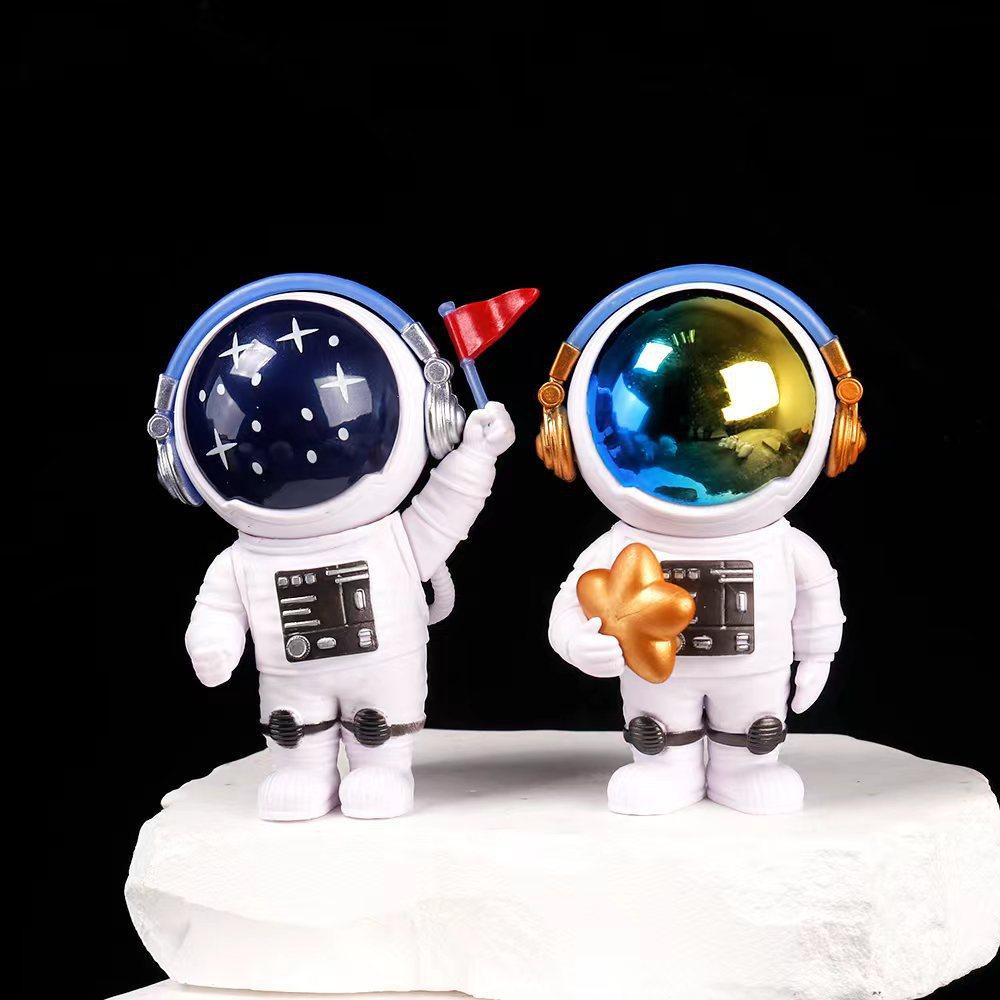 Figura de PVC de astronauta de cabeza grande con diseño de astronauta, universo espacial, cielo estrellado, decoración para tarta de cumpleaños infantil, modelo decorativo