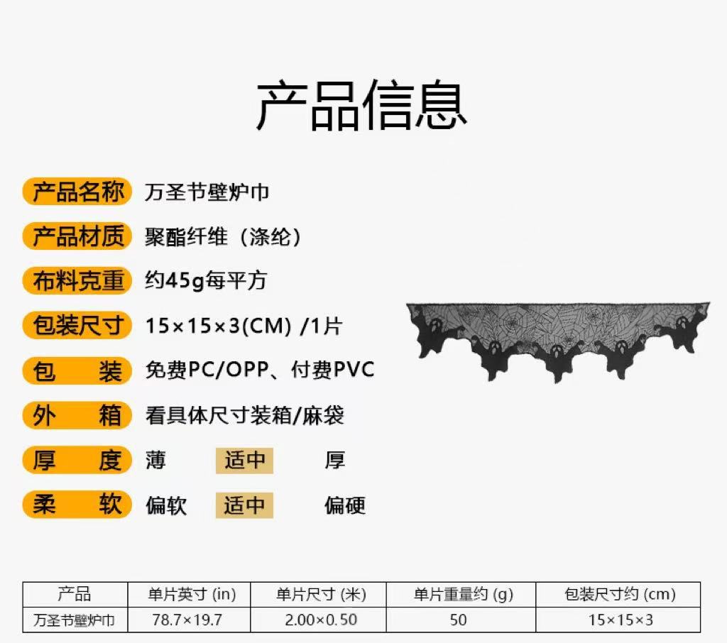 Halloween Encaje de Punto por Urdimbre Negro Toalla para Chimenea Nuevo Poliéster Festival de Fantasmas Telaraña Paño Decorativo Fabricante Ventas Directas Transfronterizas