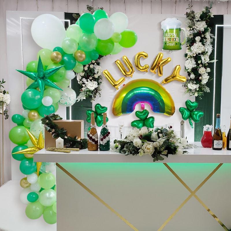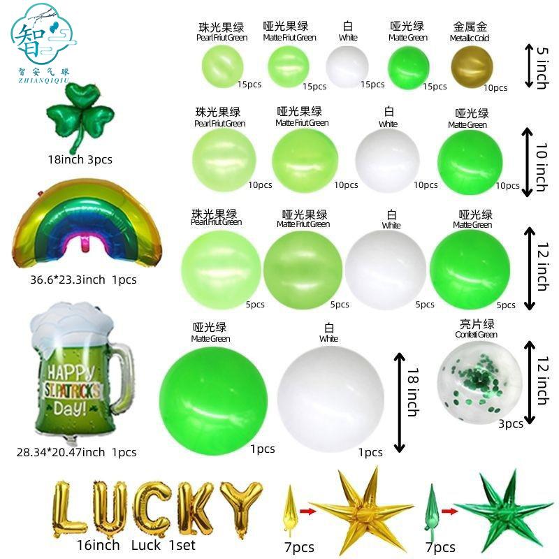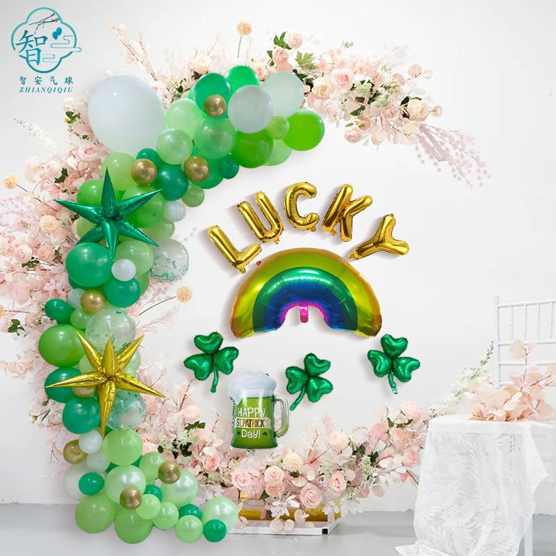 Globo Zhian Verde Suerte Globo de Fiesta Papel de Estaño Traje de Cumpleaños Decoración de Boda Decoración de Tienda Combinación Gas