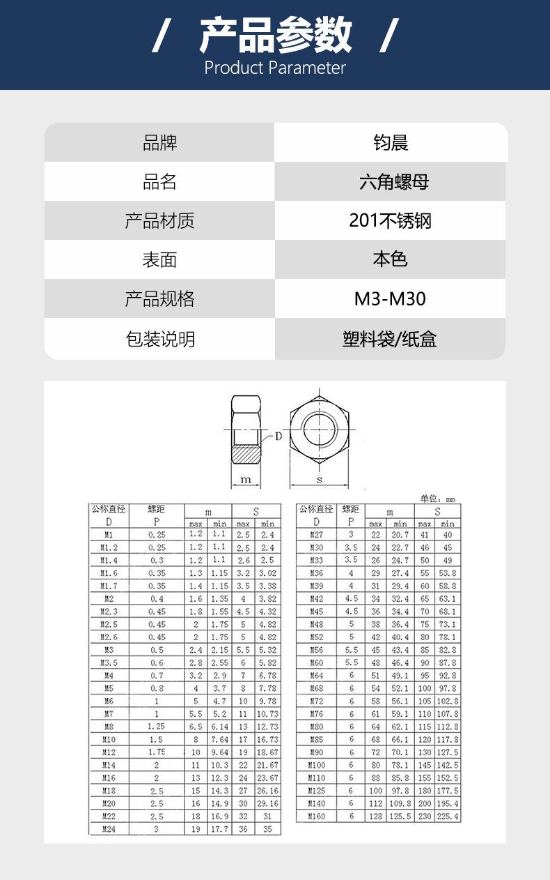 M3(201 stainless steel hex nut), M4(201 stainless steel hex nut), M5(201 stainless steel hex nut), M6(201 stai...