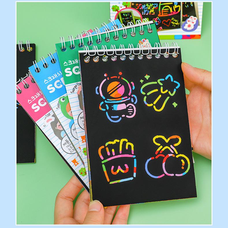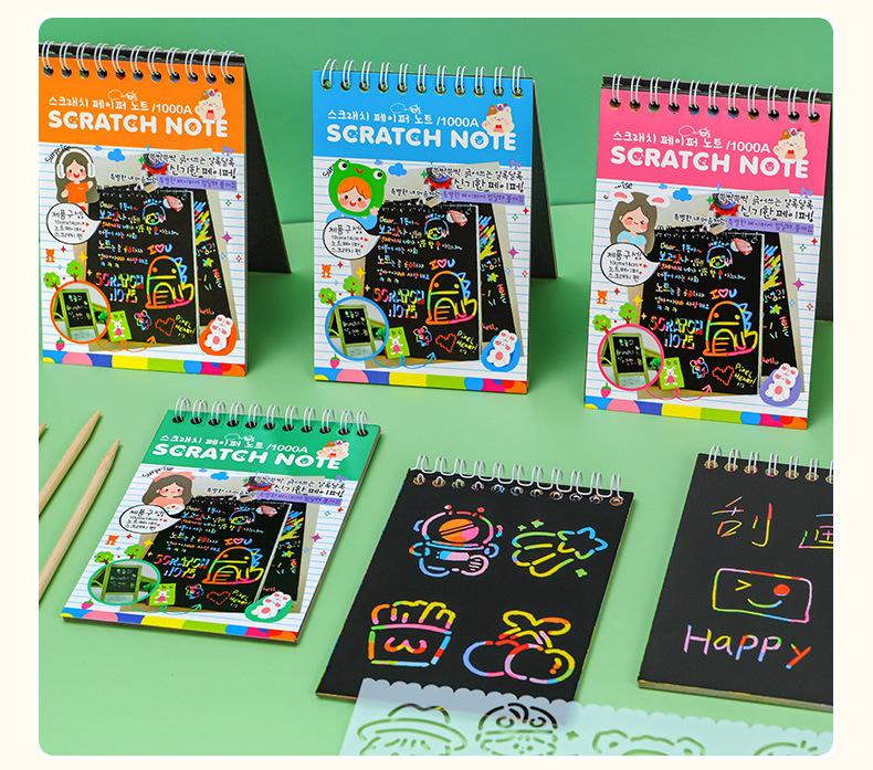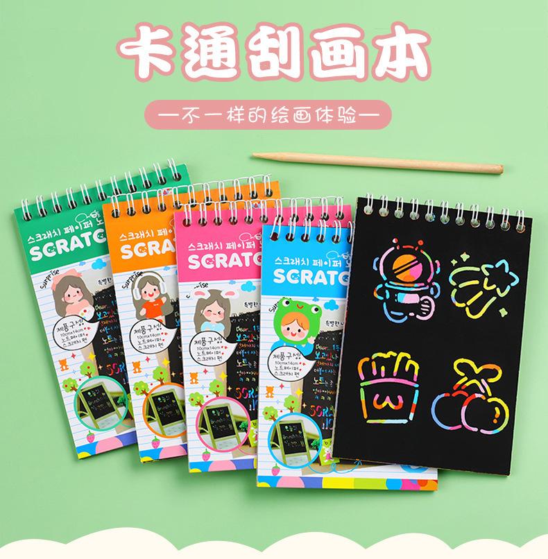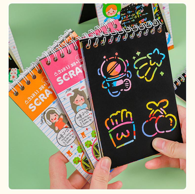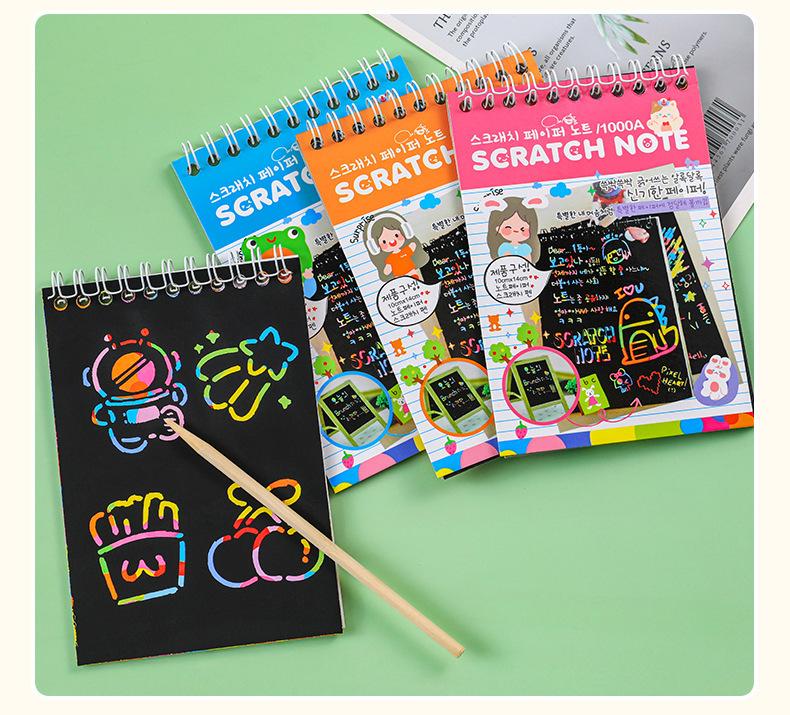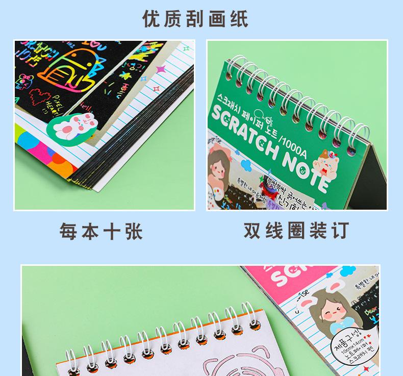 Papel raspado, franqueo colorido para niños, 100 tarjetas de dibujo, papel raspado hecho a mano, bricolaje, pintura de arena creativa de colores
