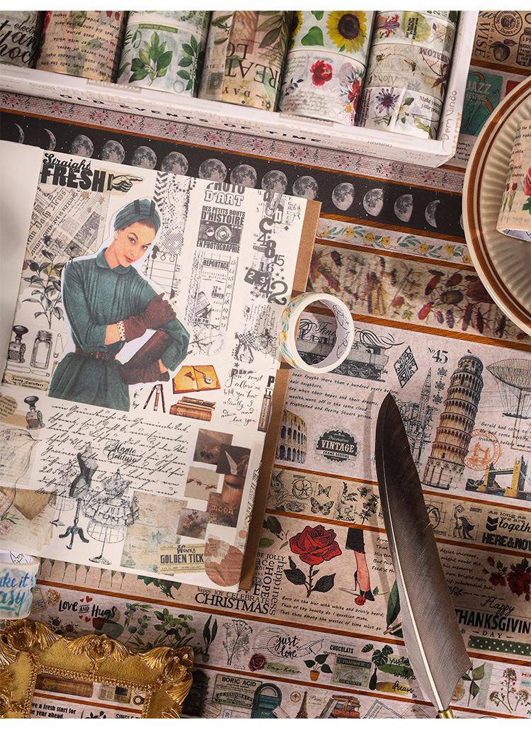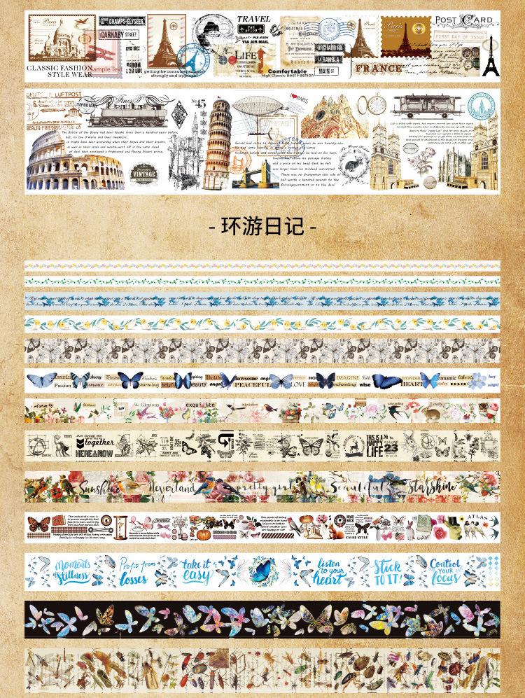 Serie Diario de Viaje Diario con Cinta Adhesiva y Papel para Pintar Diario Material de Fondo Grande Papel al por Mayor 18 Rollos