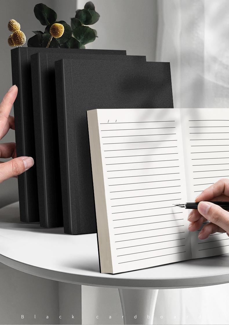 Cuaderno de piel de vaca Sijin con lomo recto, tamaño A5, línea horizontal, grueso, tarjeta negra, B5, en blanco, cuadrícula para estudiantes, cuaderno de práctica
