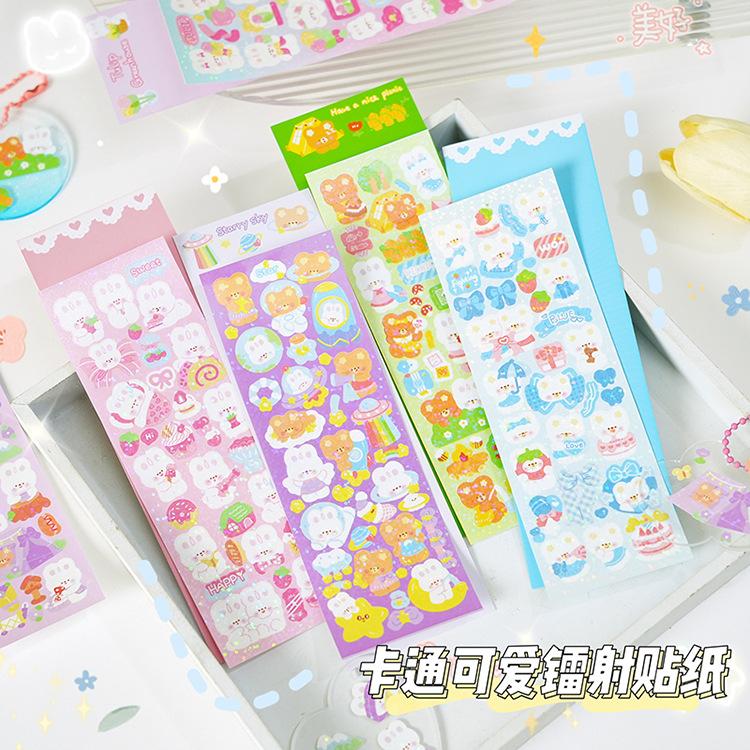 Pegatina de tarjeta láser Goo, bonita pegatina de cuenta de mano DIY, pegatina de decoración de álbum de cuenta de mano de niña, pegatina de tarjeta Aidou Goo