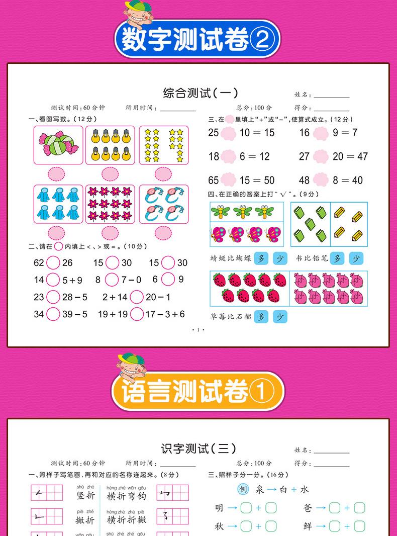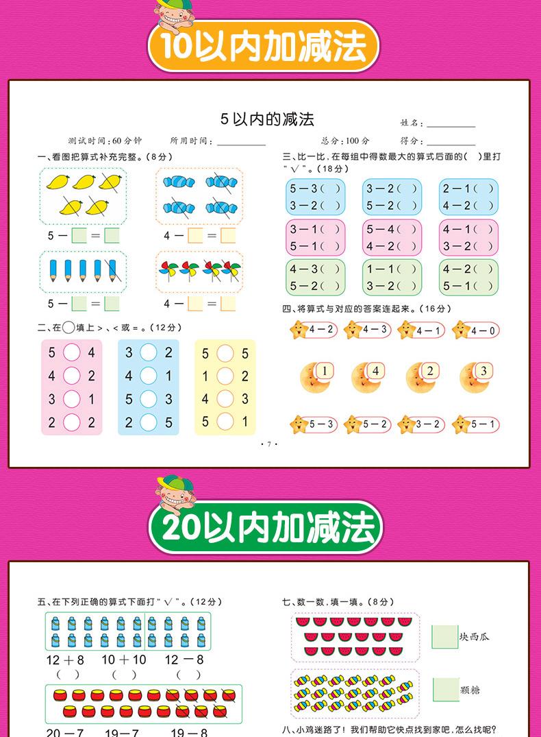 Addition and subtraction within 10, Addition and subtraction within 20, Math Test Volume 2, Language Test Volu...