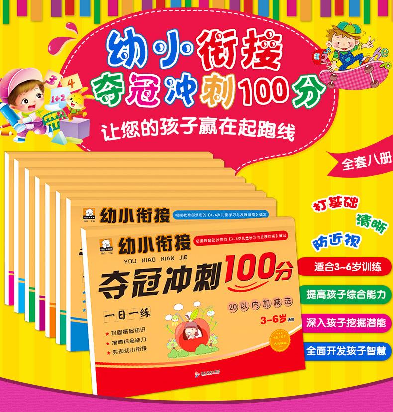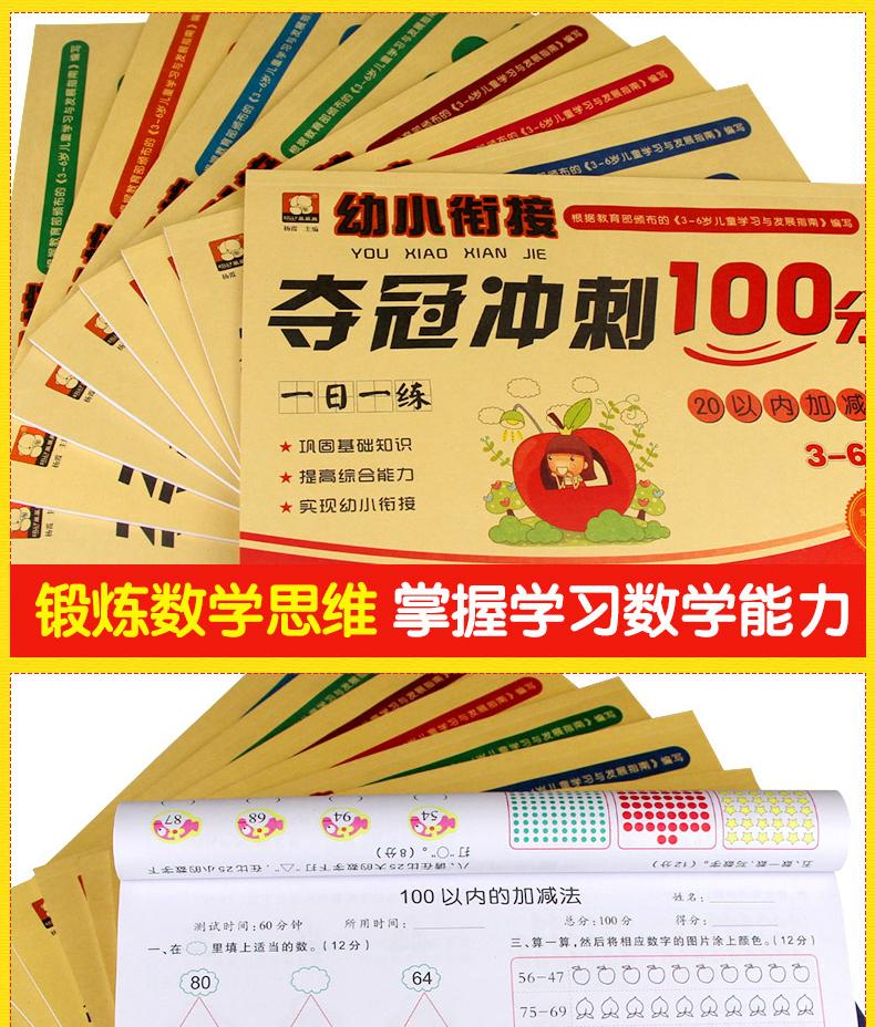 Los niños pequeños se dan la mano y practican un día para ganar el campeonato, correr 100 puntos, las 8 copias de los materiales de enseñanza del examen preescolar de jardín de infantes al por mayor
