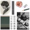 Lápiz de dibujo, juego de 43 piezas, pincel de dibujo para principiantes, suministros de arte, bolsa de lona portátil, dibujo