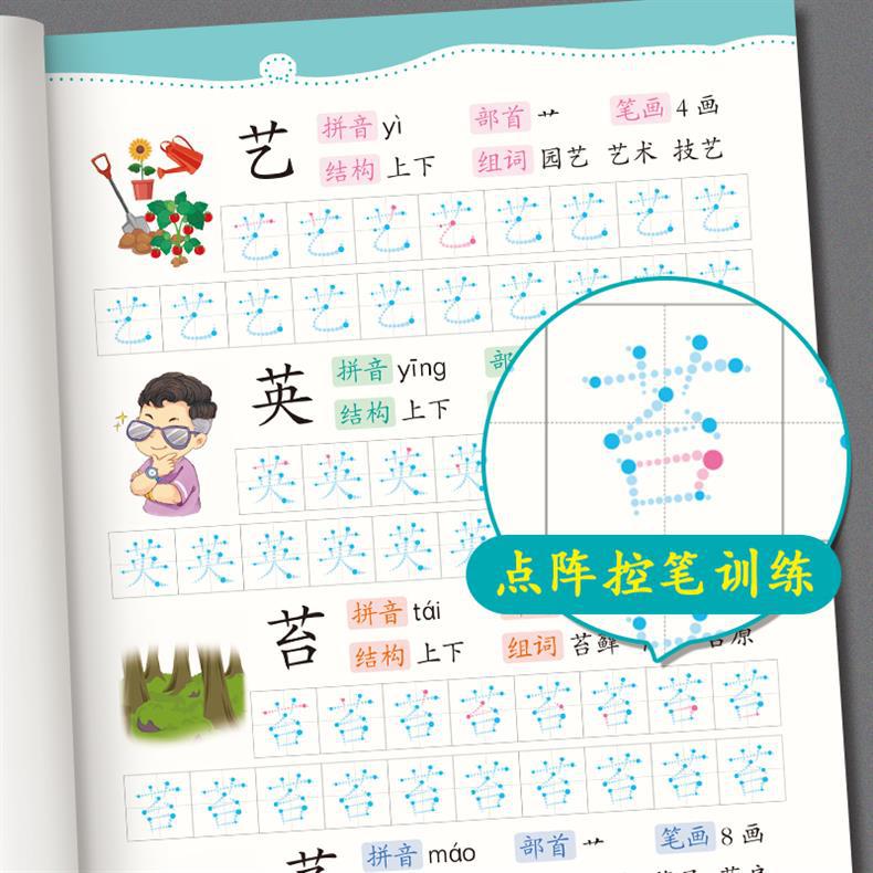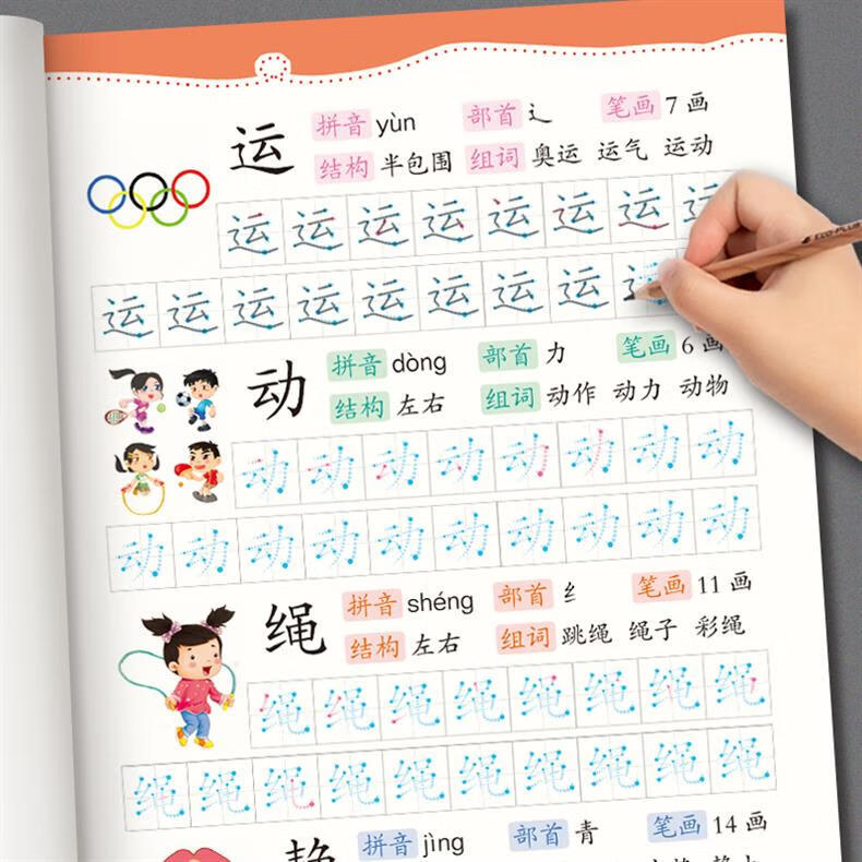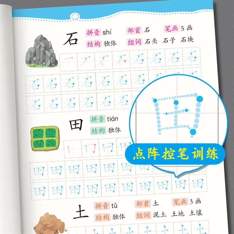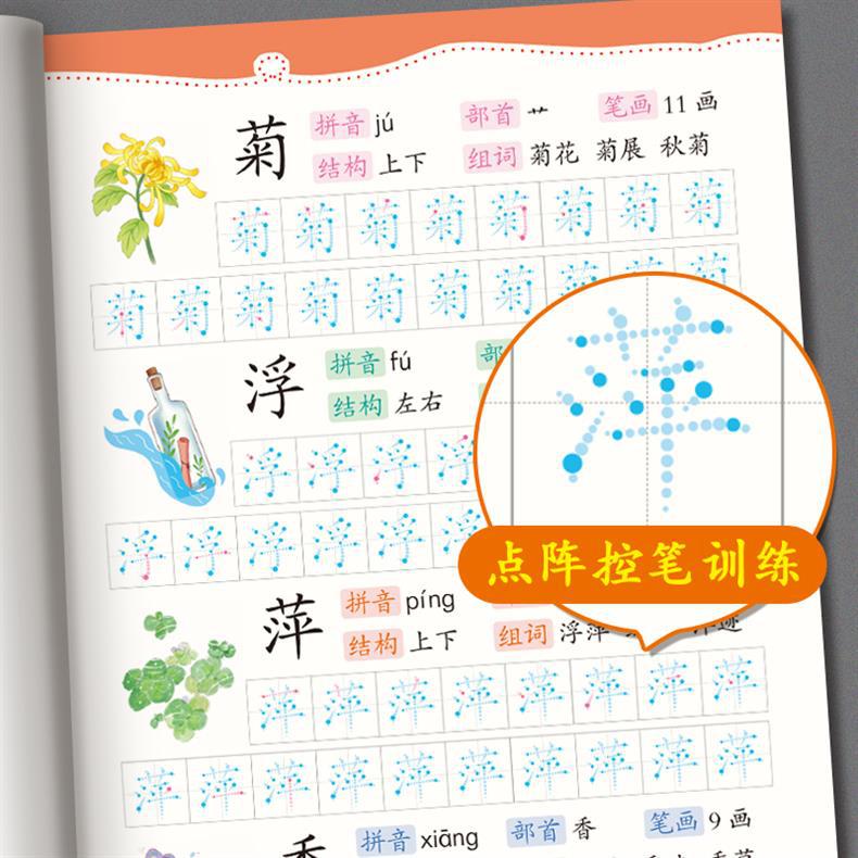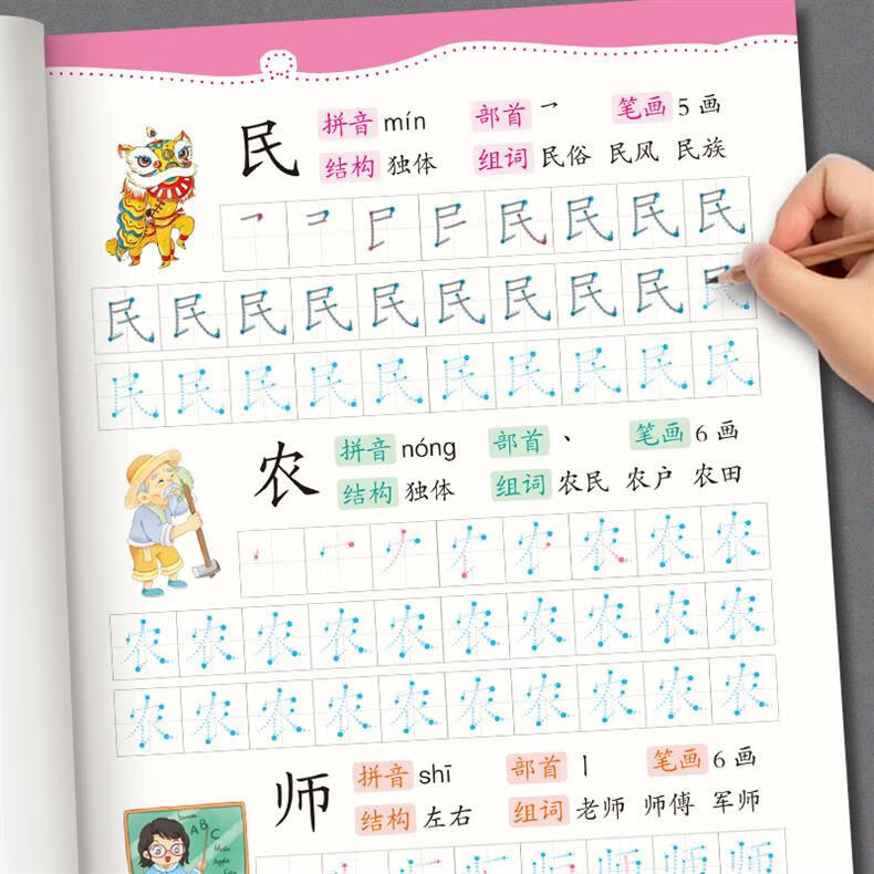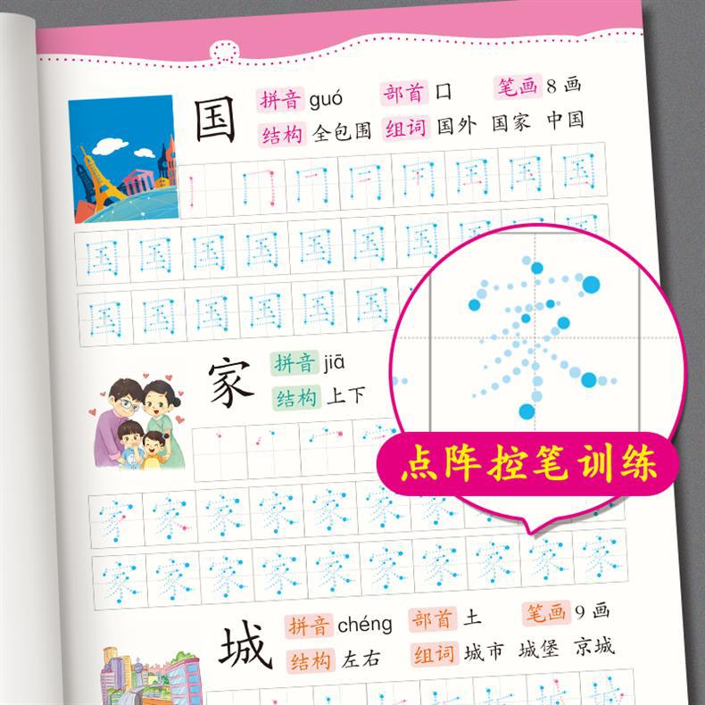Cuaderno de práctica de escritura con lápiz de control de matriz de puntos de 1000 caracteres para estudiantes de primaria, cuaderno de práctica de trazado de caracteres chinos en rojo, libro de alfabetización de escritura para niños en edad preescolar para principiantes