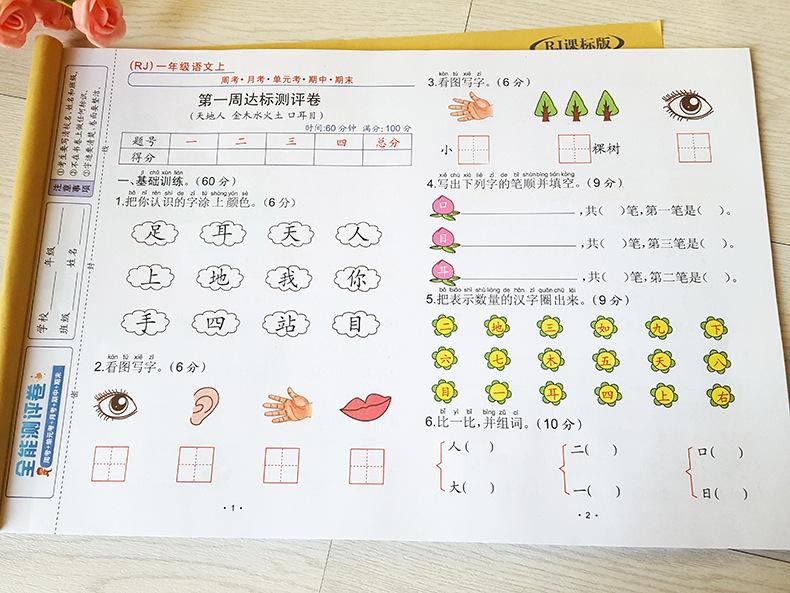 The first grade primary school chinese and mathematics test papers, the first and second volumes, the all-roun...