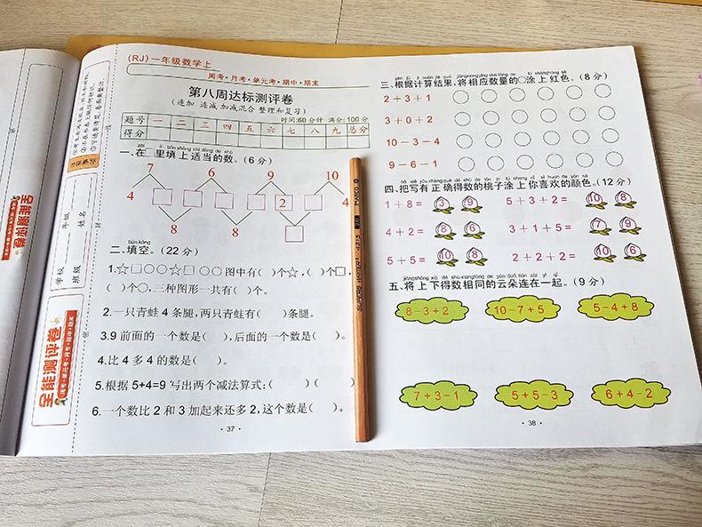 Hoja de evaluación de matemáticas chinas de primer grado de escuela primaria, período de examen lunar de enero, preguntas del examen de 100 puntos a mitad y al final del sprint